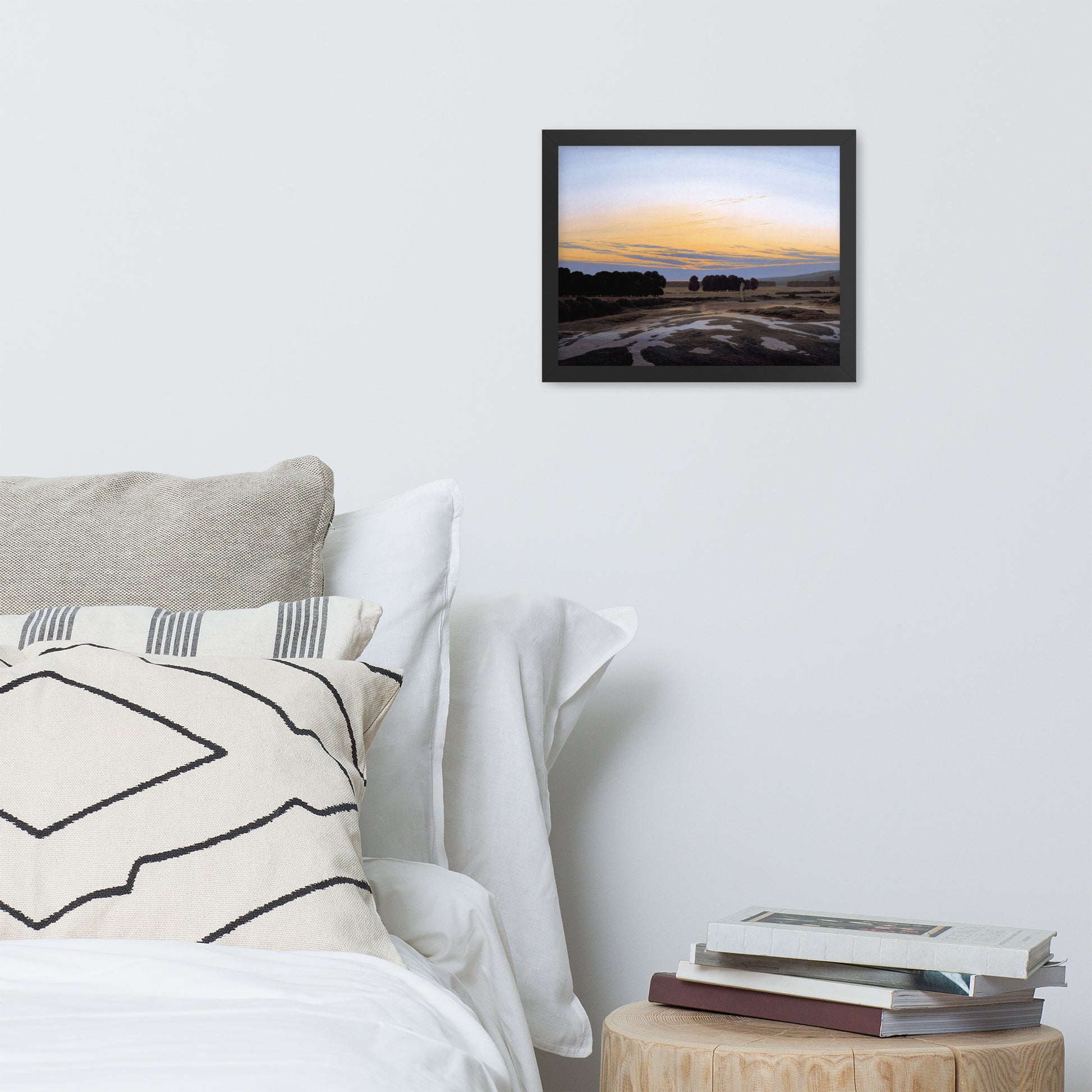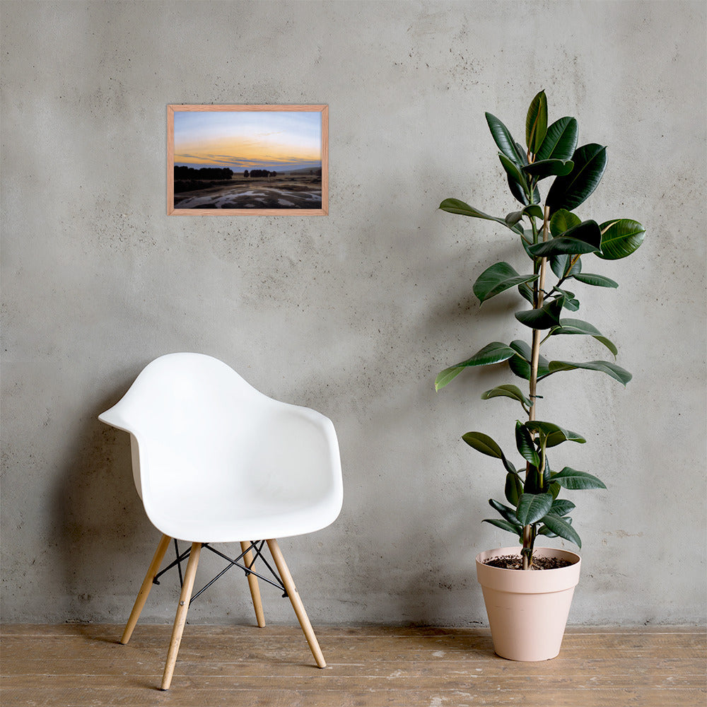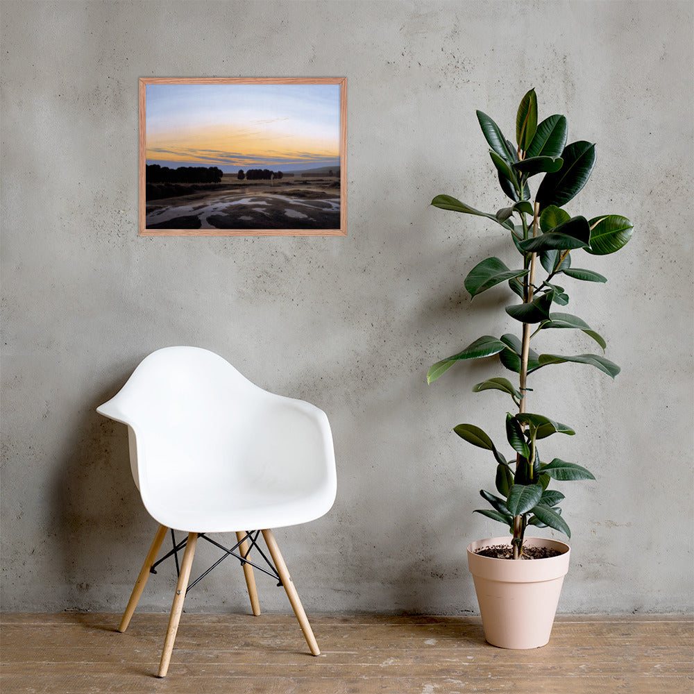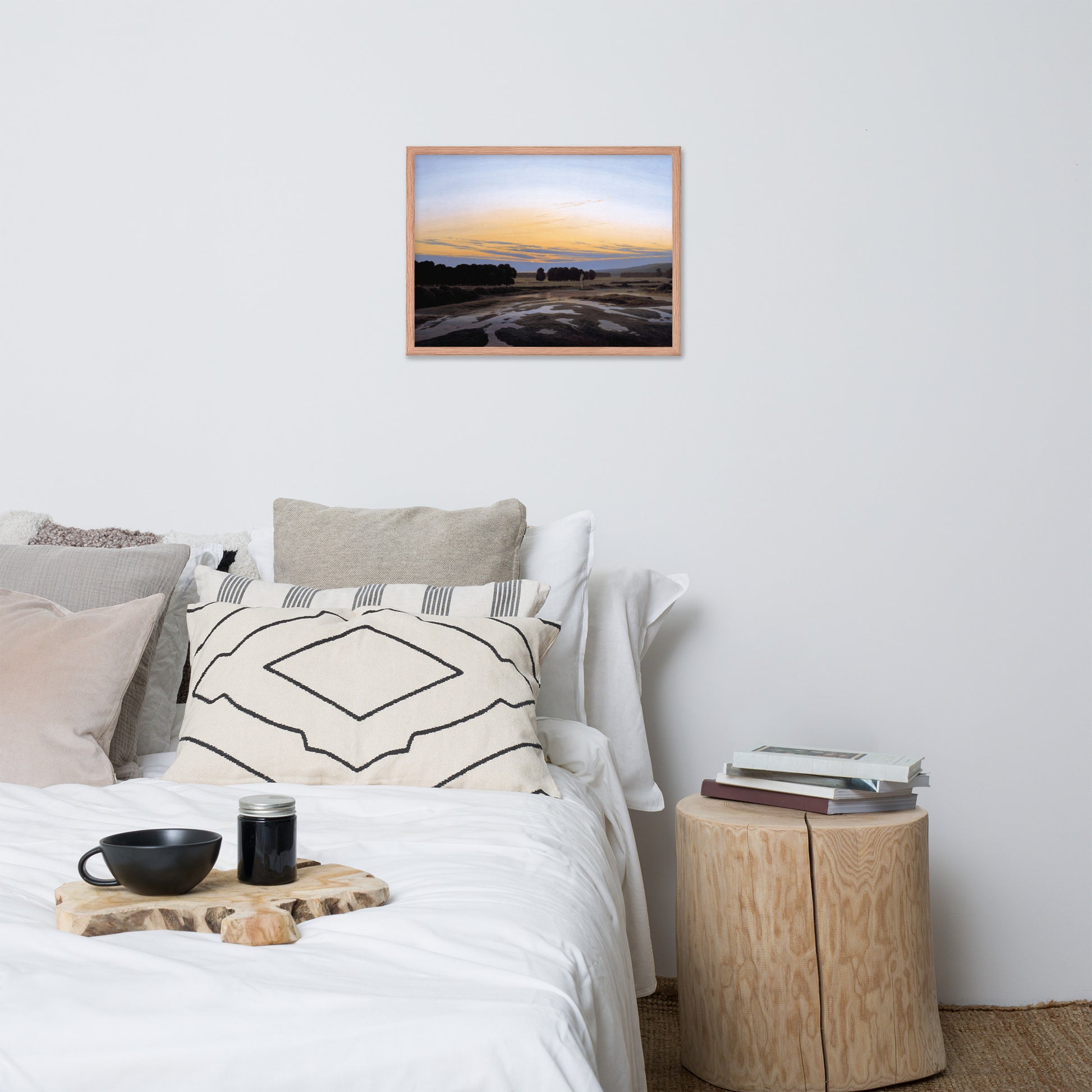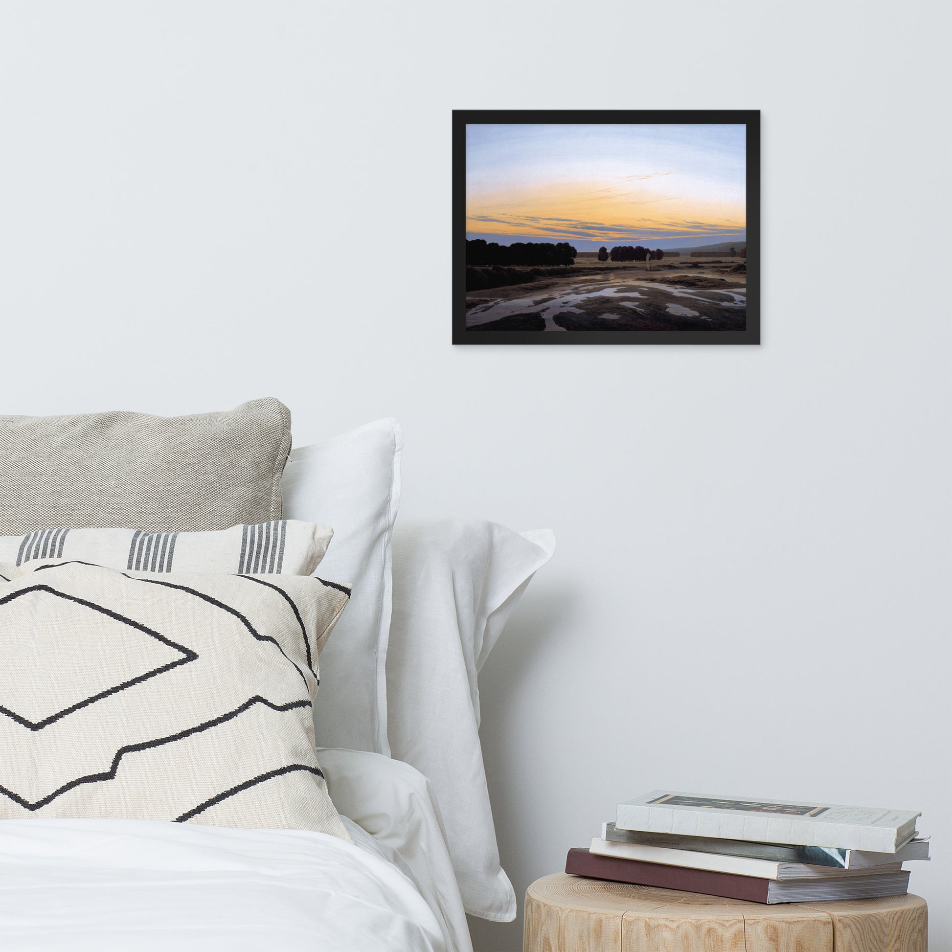 Offered as a premium framed wall print, this artwork brings a sense of poetic calm to modern interiors. Its muted palette and expansive horizon make it ideal for minimalist, nature-inspired, or meditative spaces. Whether displayed in a reading nook, studio, or gallery wall, The Great Enclosure offers a timeless escape into the sublime.