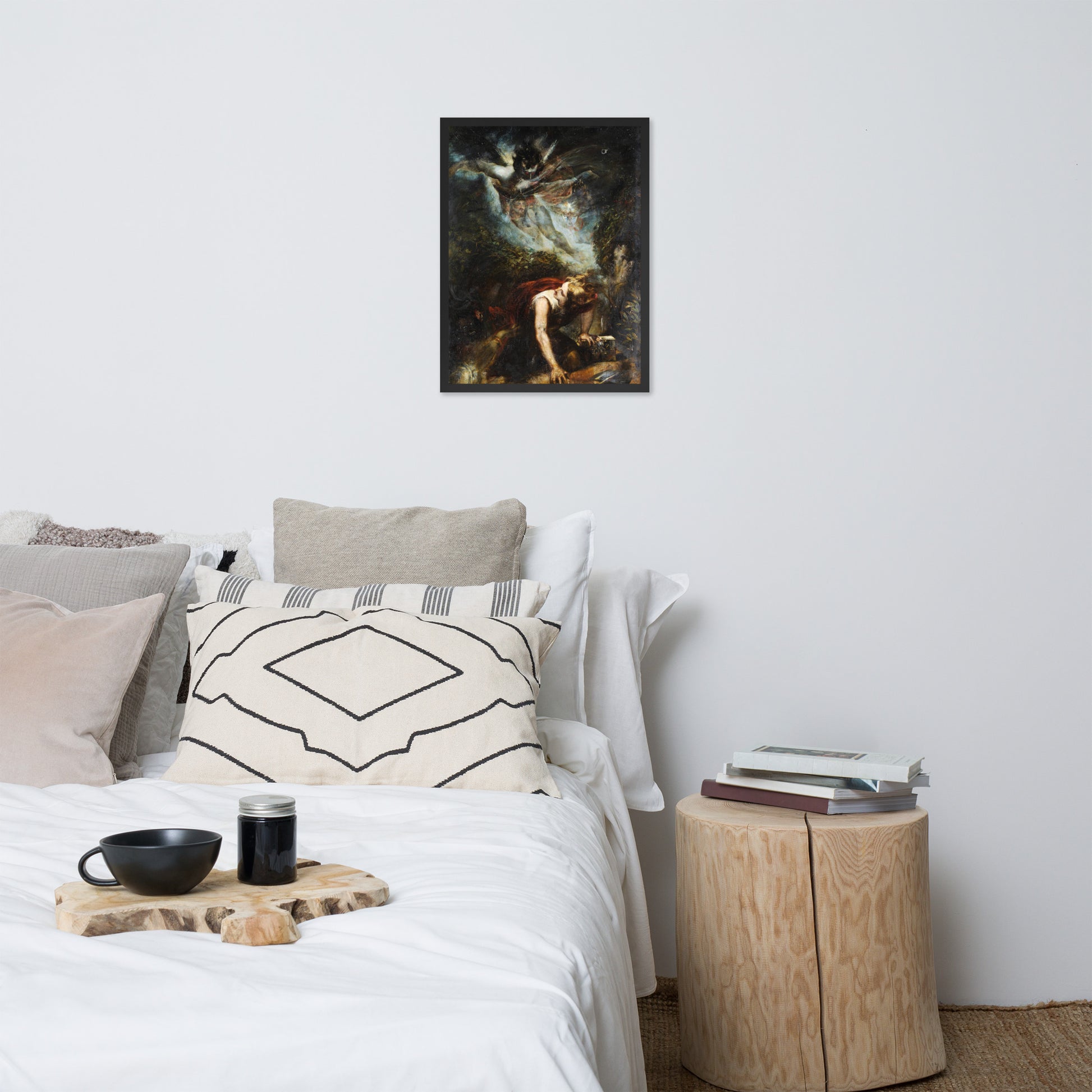 Printed with archival inks and set in a minimalist frame, this piece transforms any space into a portal of storytelling and surreal beauty. Whether placed in a study, gallery wall, or creative workspace, it invites reflection and conversation