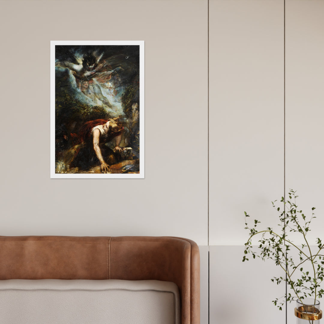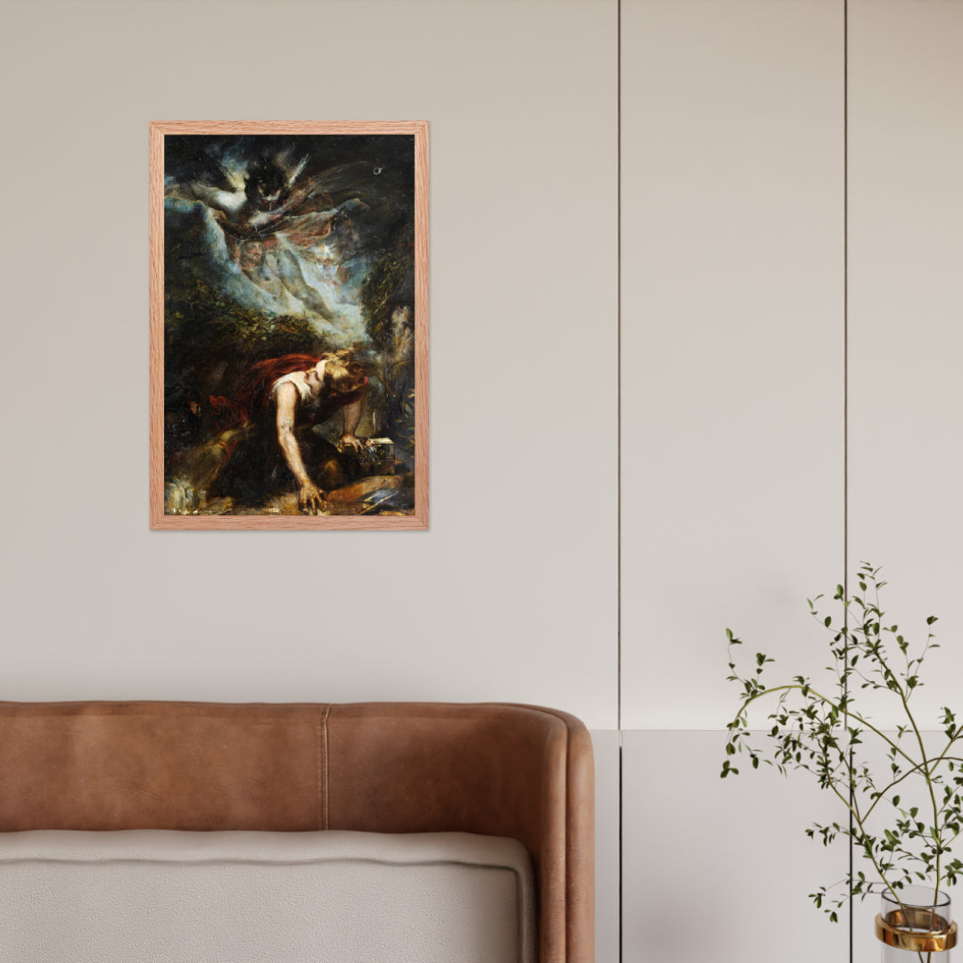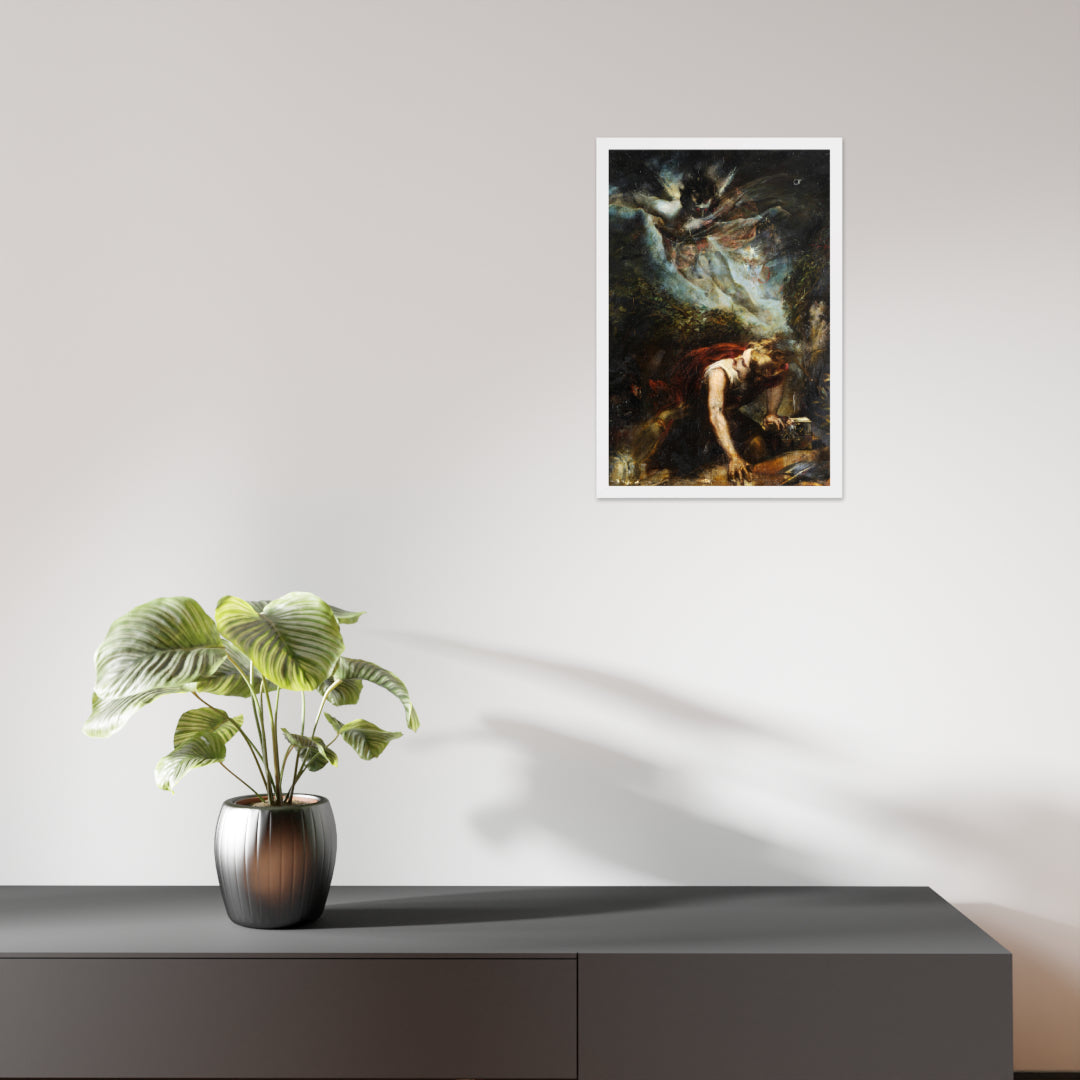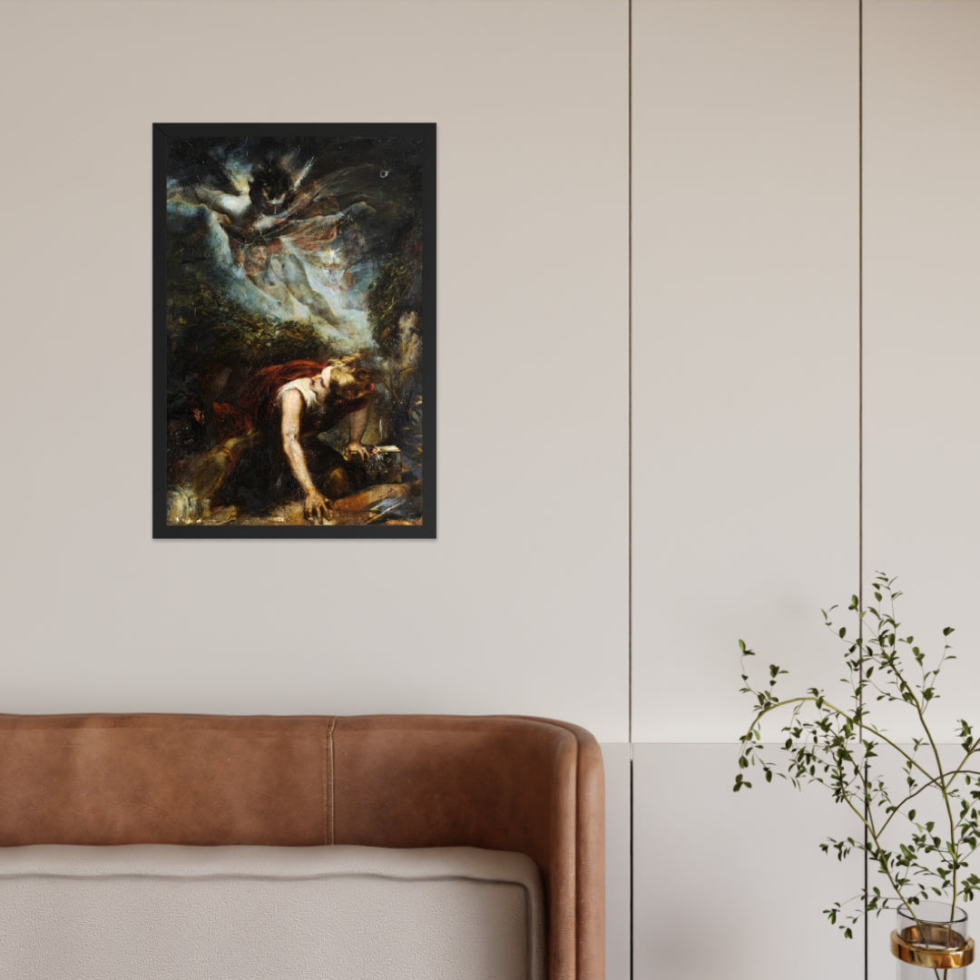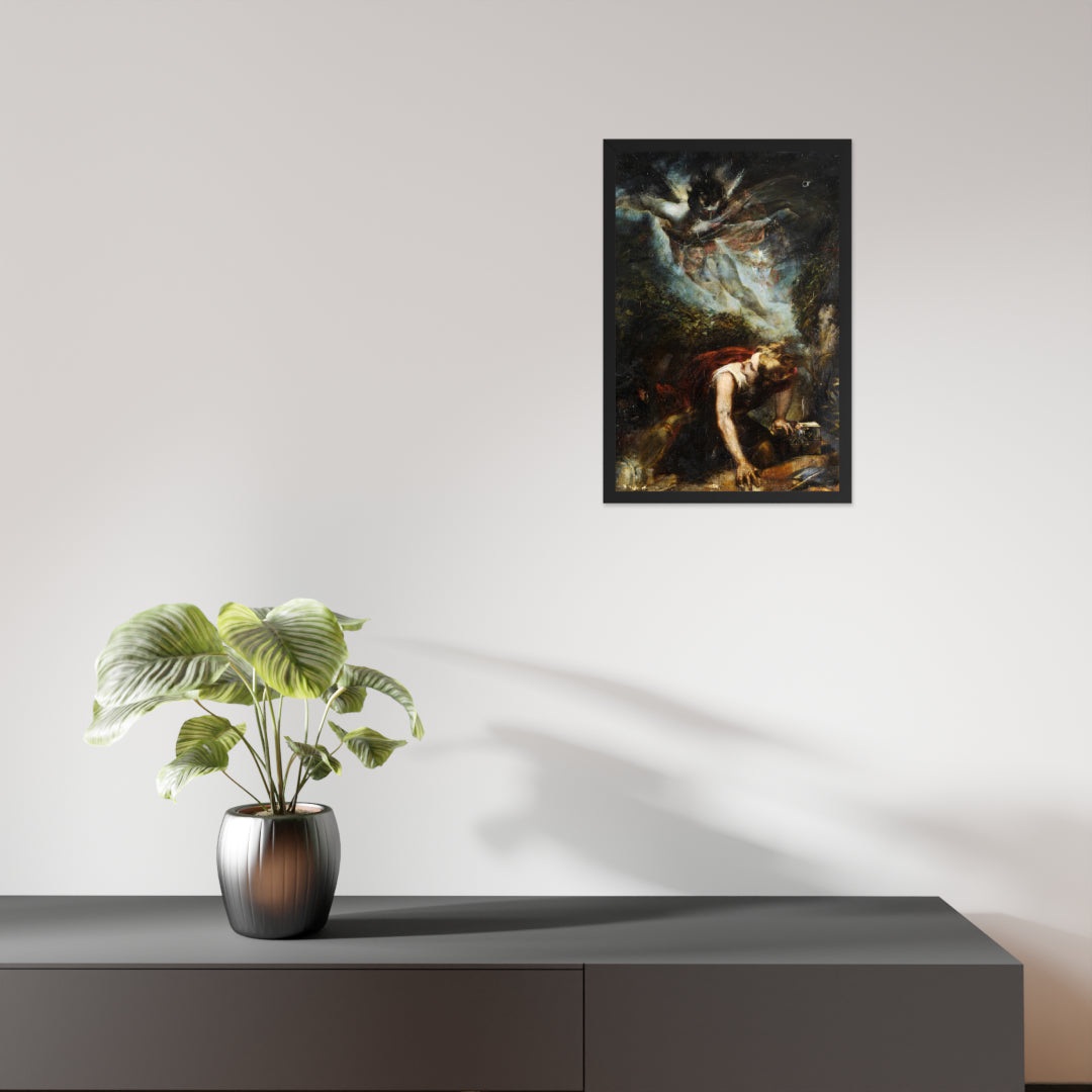 Unveil the drama of myth and emotion with The Treasure Seeker by Theodor von Holst—a surrealist masterpiece reimagined as a premium framed wall print. This evocative artwork captures a moment of divine descent and human despair, blending gothic intensity with allegorical symbolism. Ideal for interiors that crave depth, mystery, and a touch of the supernatural.