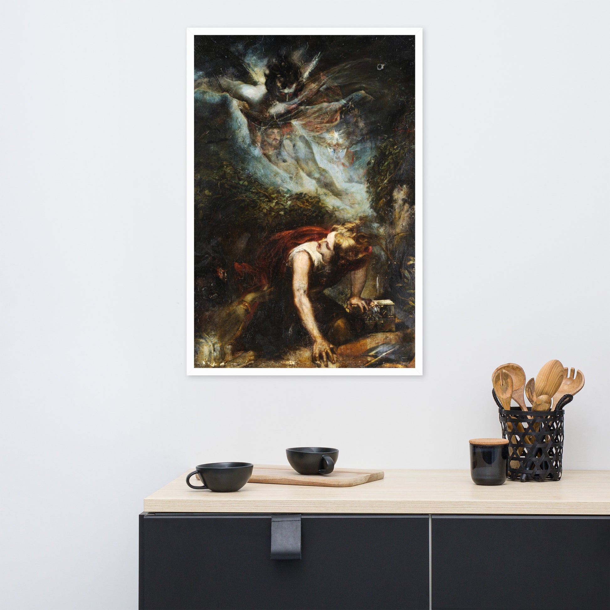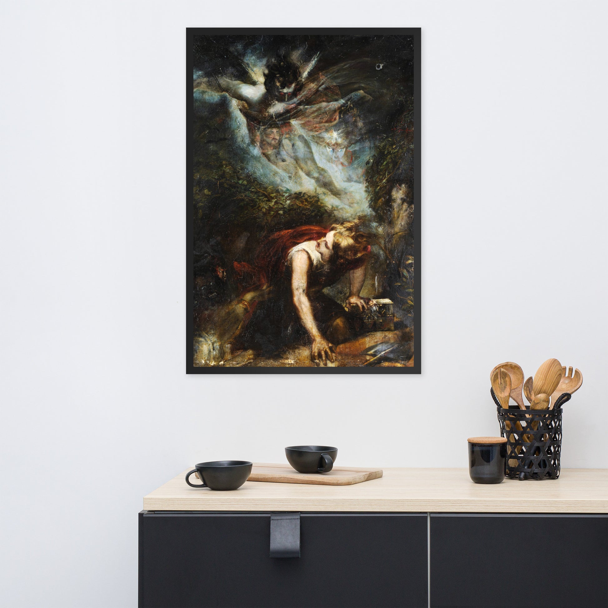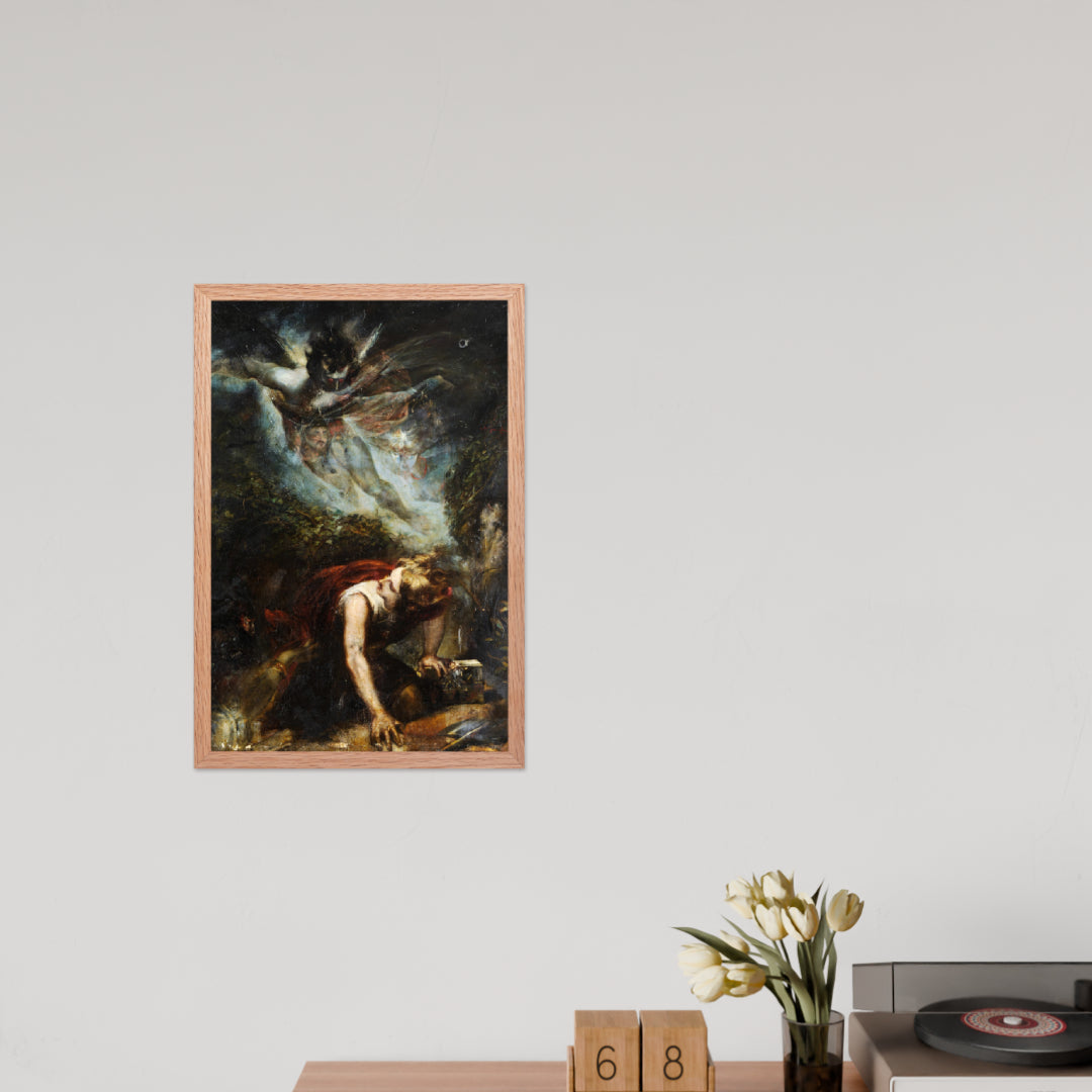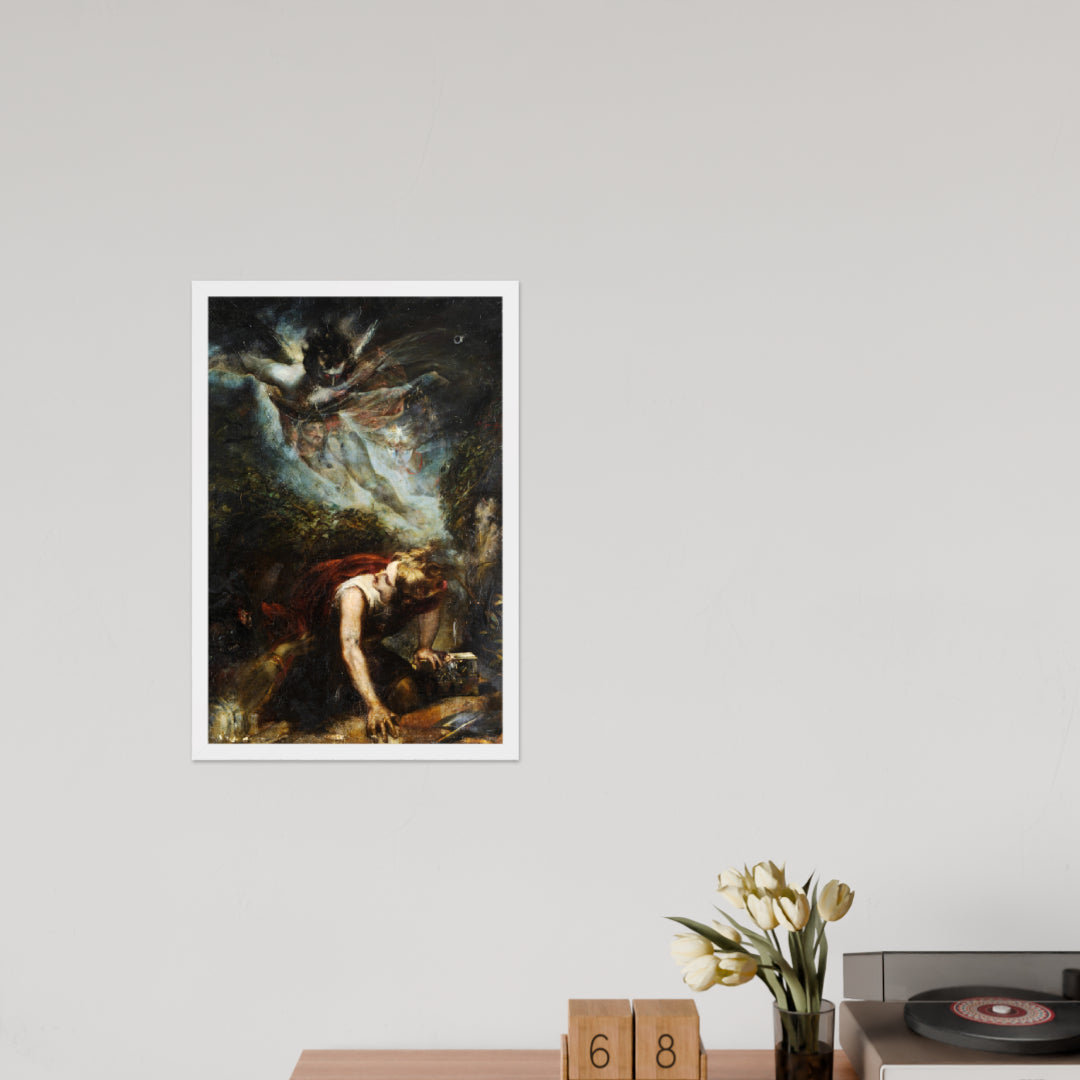 Unveil the drama of myth and emotion with The Treasure Seeker by Theodor von Holst—a surrealist masterpiece reimagined as a premium framed wall print. This evocative artwork captures a moment of divine descent and human despair, blending gothic intensity with allegorical symbolism. Ideal for interiors that crave depth, mystery, and a touch of the supernatural.