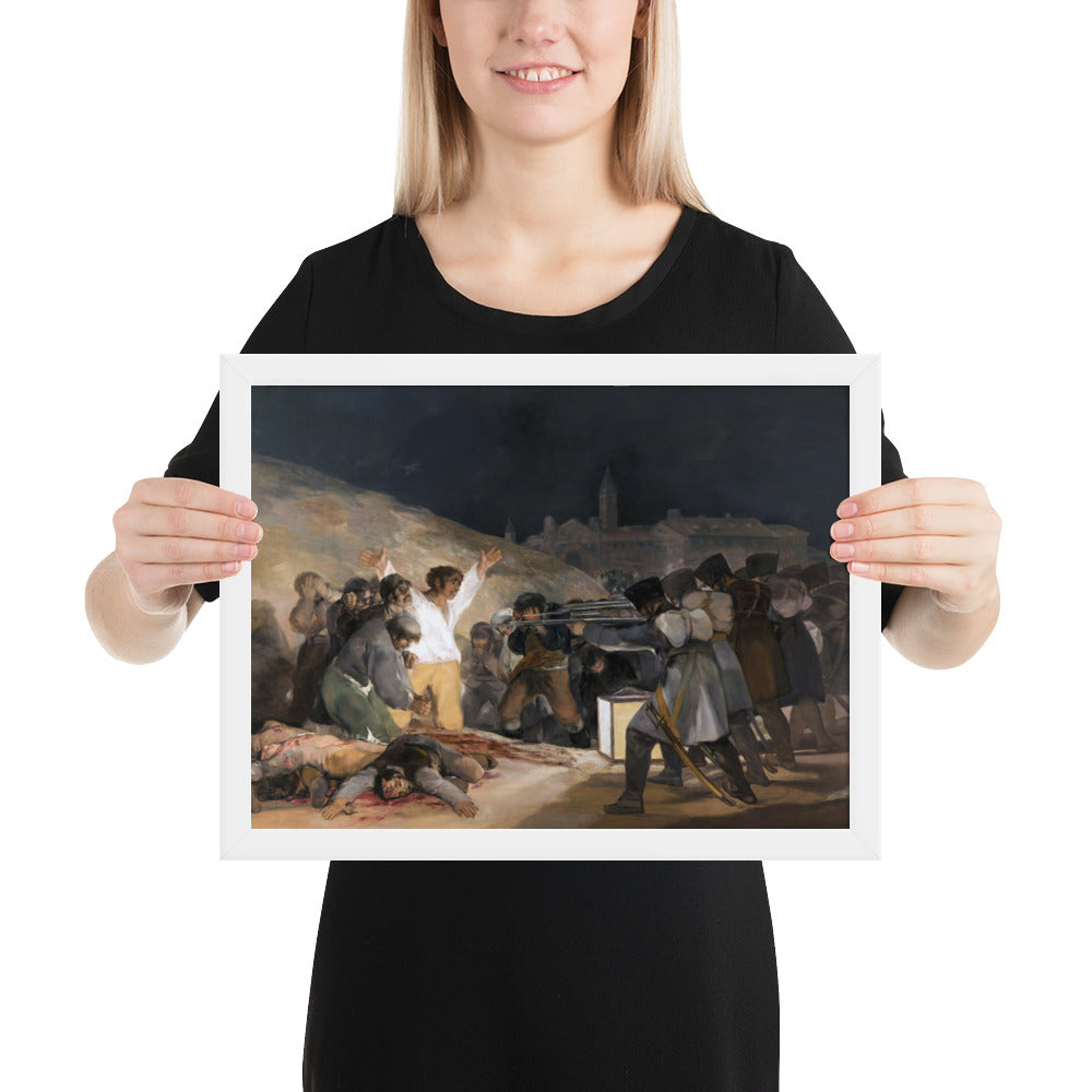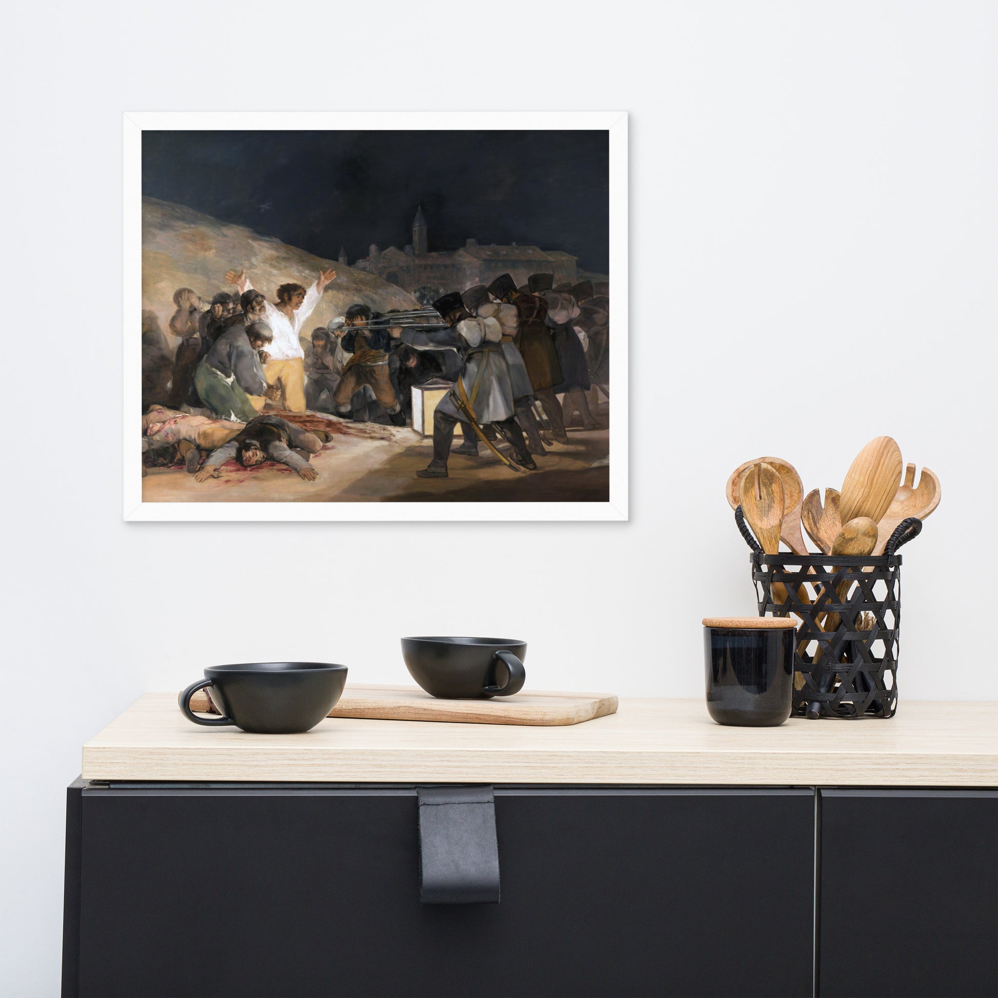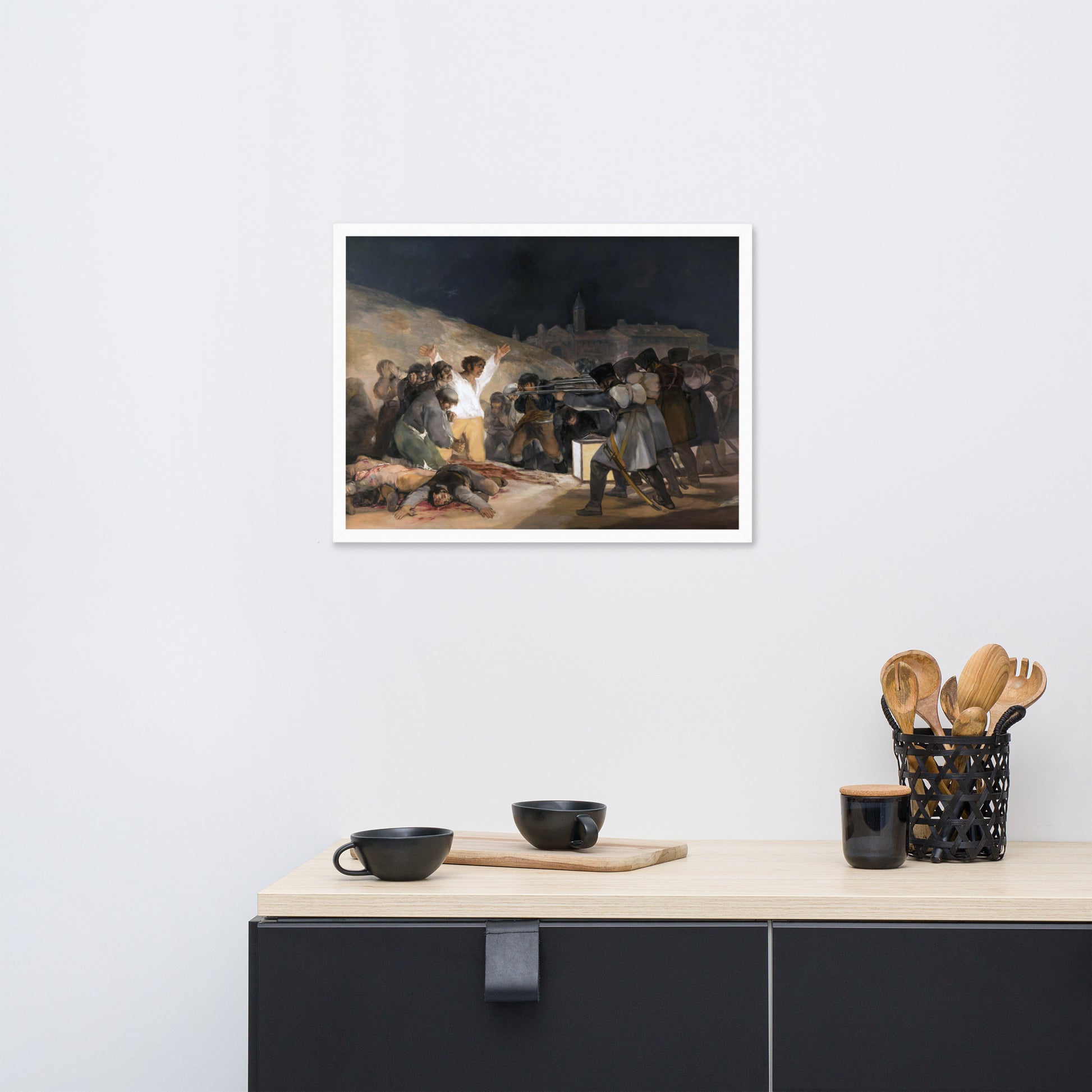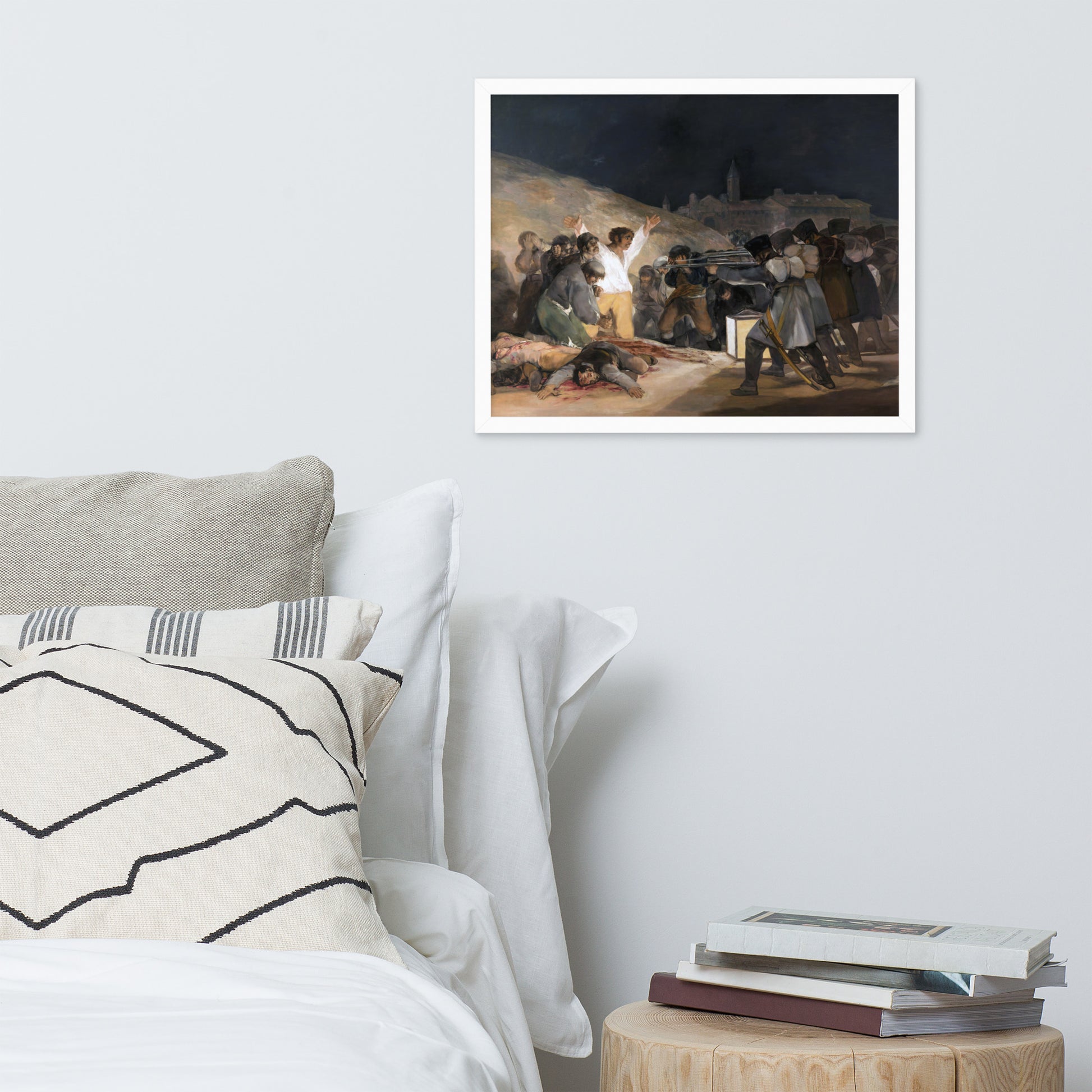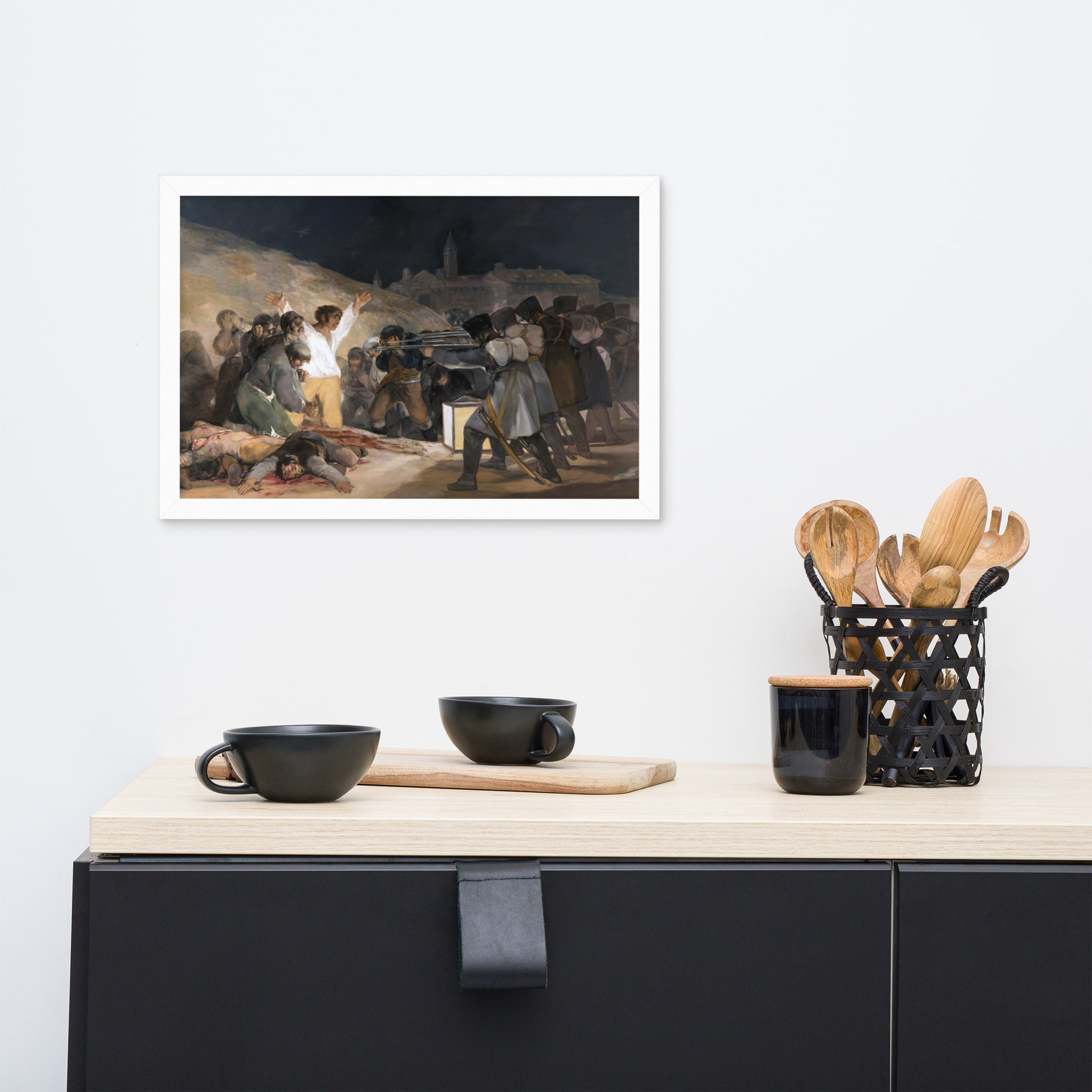 Bring the emotional force of Romanticism into your space with this framed wall print of The Third of May 1808 by Francisco Goya. A searing portrayal of resistance and sacrifice, this iconic artwork captures a moment of brutal execution during the Peninsular War. The central figure—arms raised in surrender and defiance—stands illuminated against the dark backdrop, symbolizing innocence, martyrdom, and the human cost of conflict.