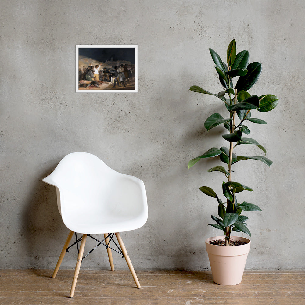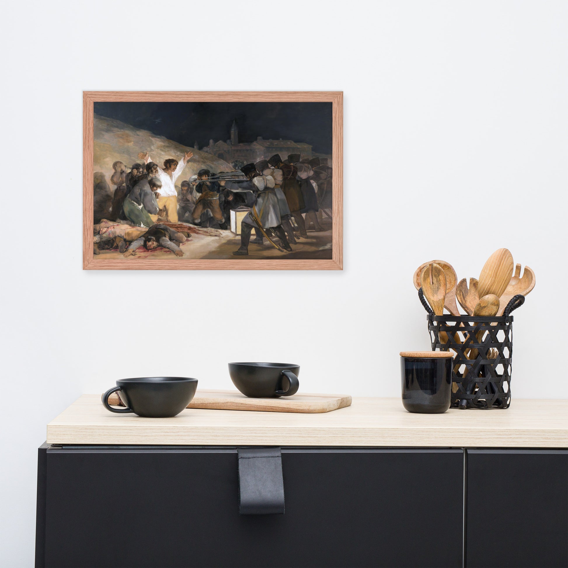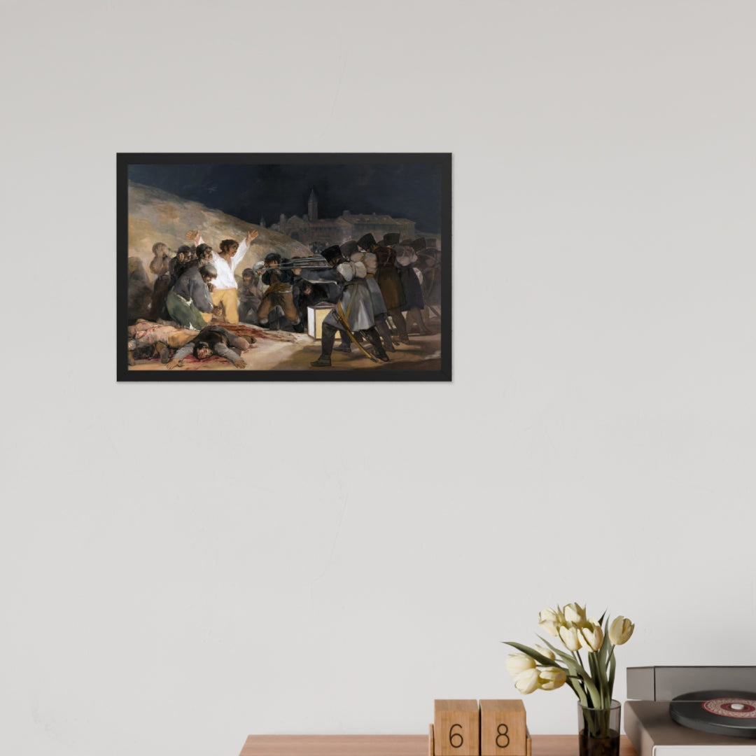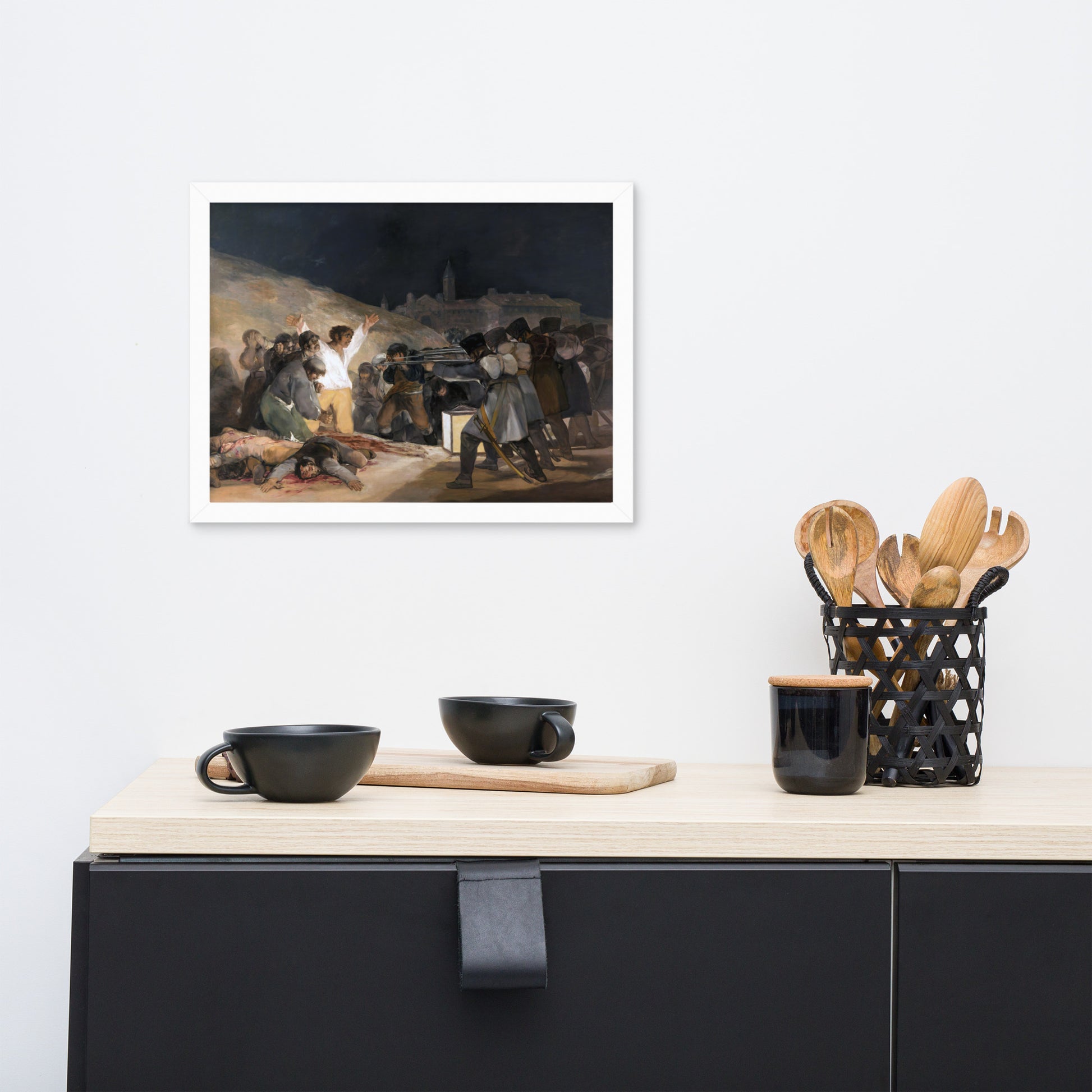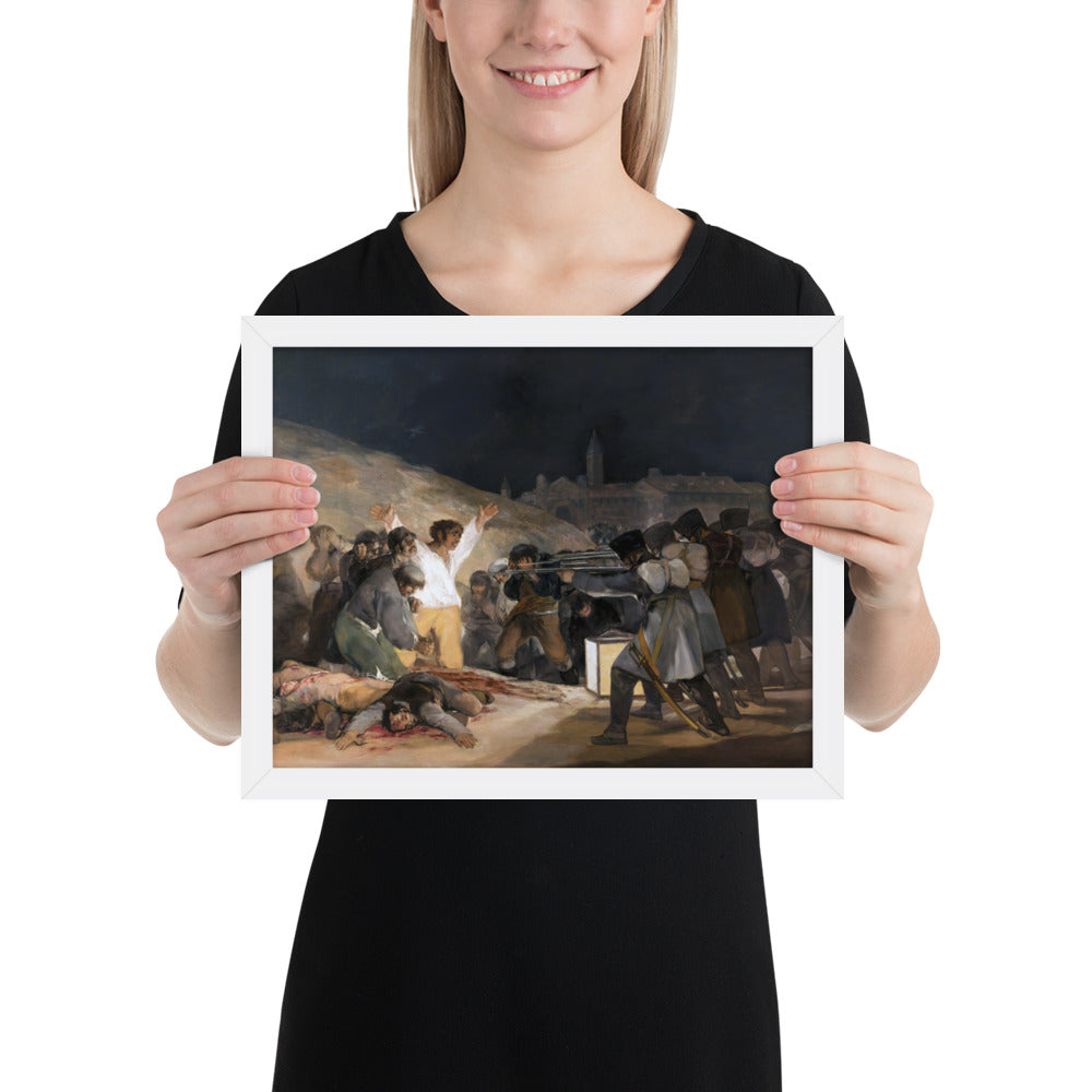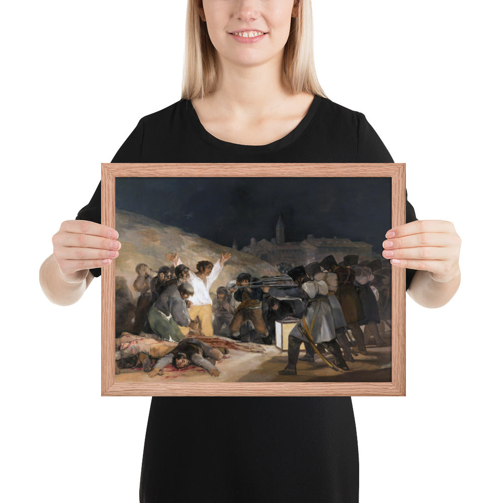Bring the emotional force of Romanticism into your space with this framed wall print of The Third of May 1808 by Francisco Goya. A searing portrayal of resistance and sacrifice, this iconic artwork captures a moment of brutal execution during the Peninsular War. The central figure—arms raised in surrender and defiance—stands illuminated against the dark backdrop, symbolizing innocence, martyrdom, and the human cost of conflict.