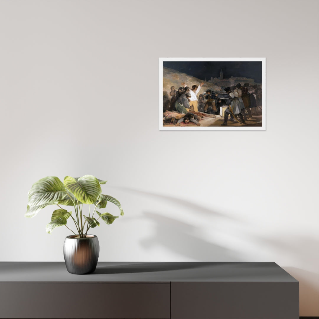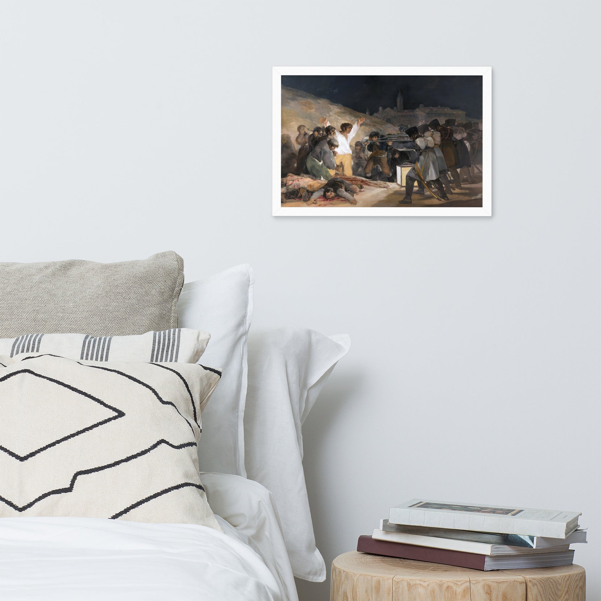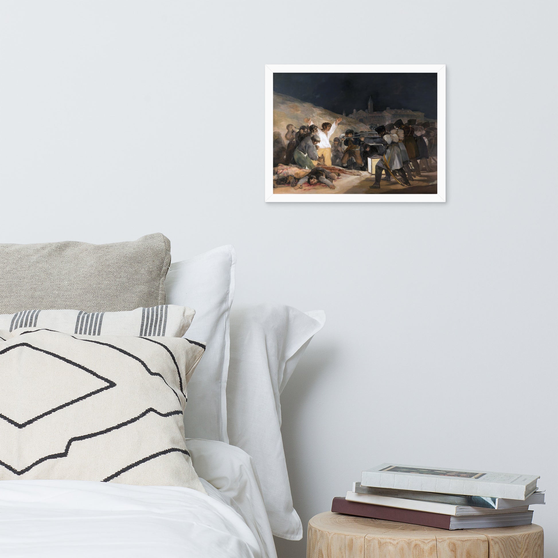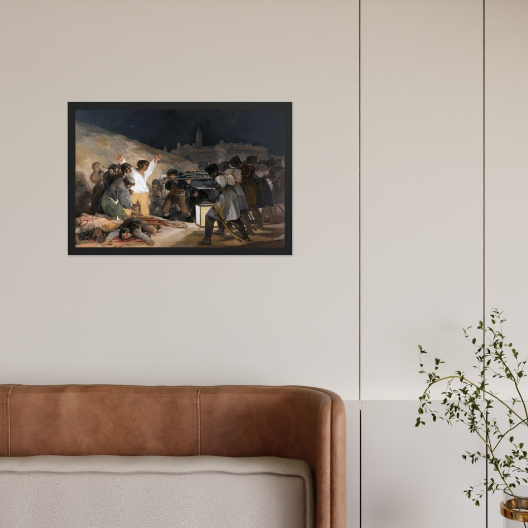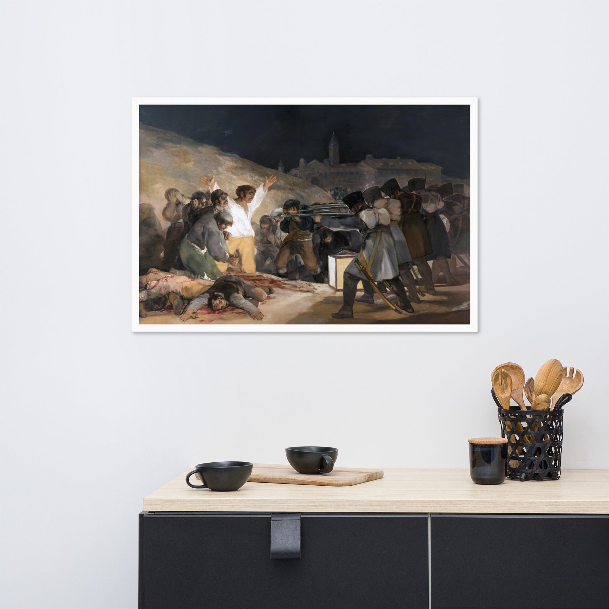 Bring the emotional force of Romanticism into your space with this framed wall print of The Third of May 1808 by Francisco Goya. A searing portrayal of resistance and sacrifice, this iconic artwork captures a moment of brutal execution during the Peninsular War. The central figure—arms raised in surrender and defiance—stands illuminated against the dark backdrop, symbolizing innocence, martyrdom, and the human cost of conflict.