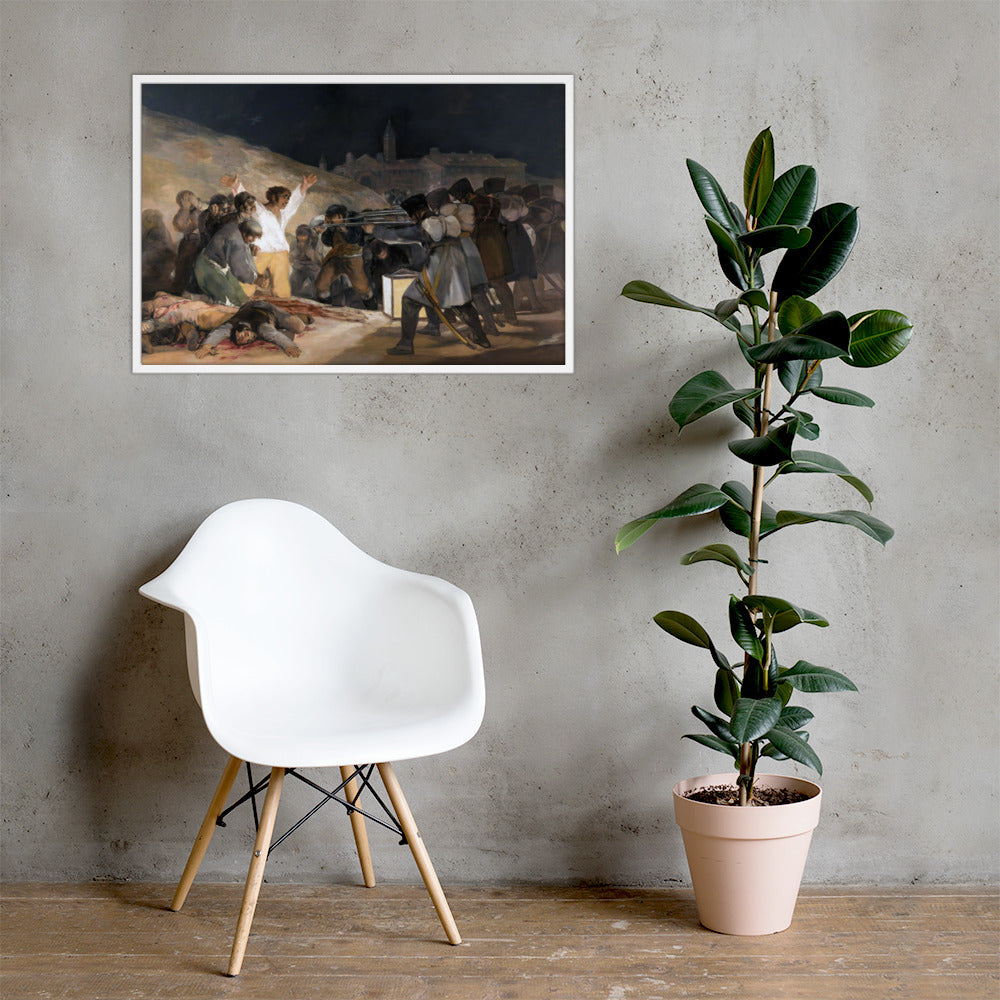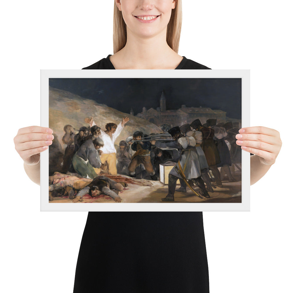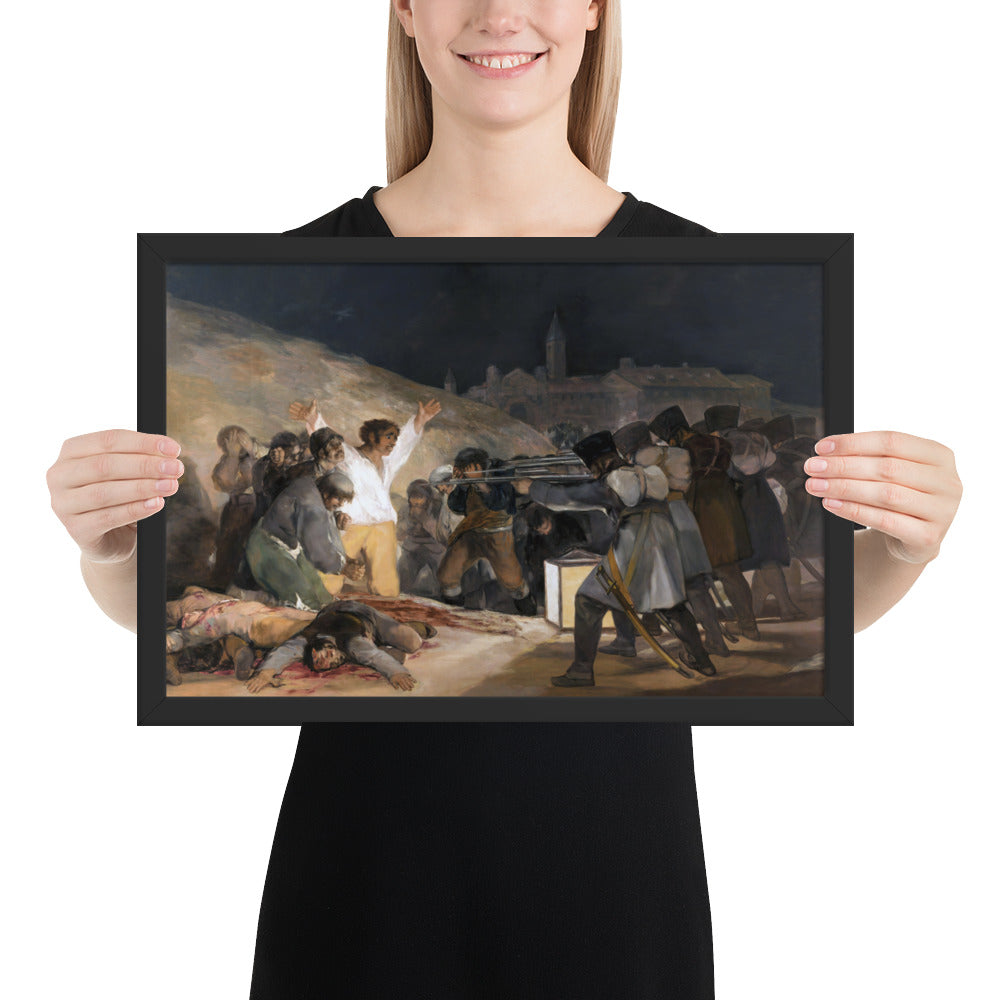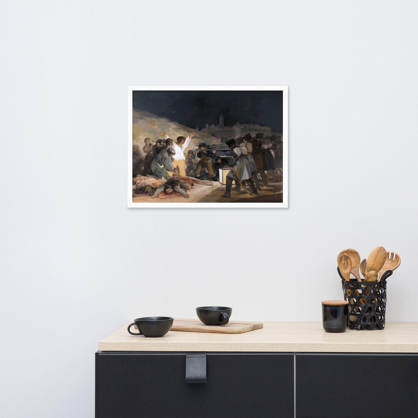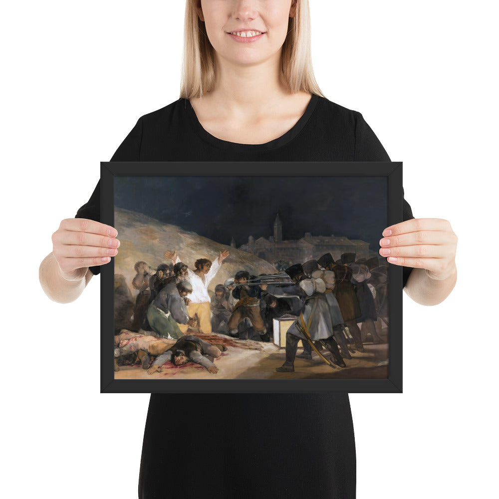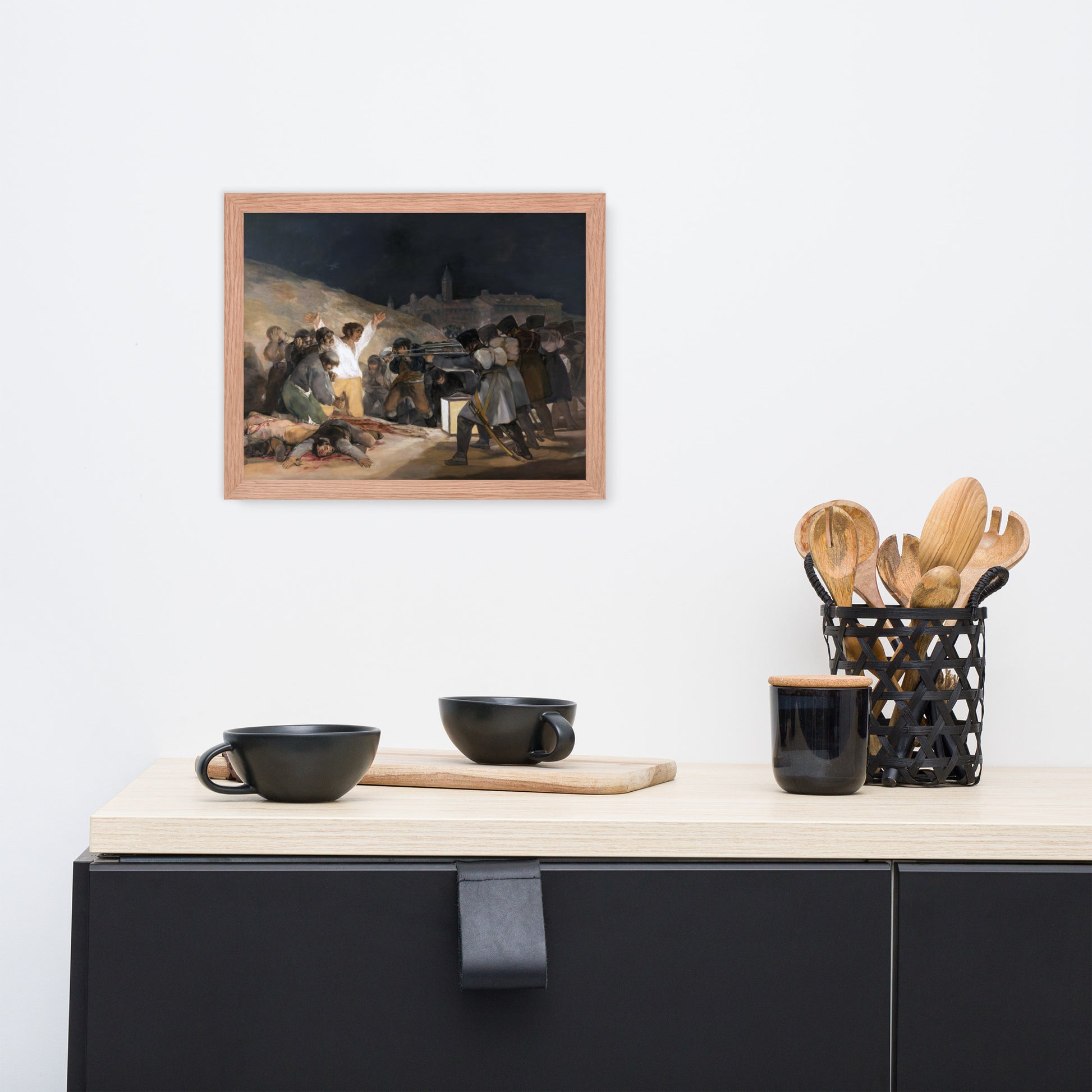 Bring the emotional force of Romanticism into your space with this framed wall print of The Third of May 1808 by Francisco Goya. A searing portrayal of resistance and sacrifice, this iconic artwork captures a moment of brutal execution during the Peninsular War. The central figure—arms raised in surrender and defiance—stands illuminated against the dark backdrop, symbolizing innocence, martyrdom, and the human cost of conflict.