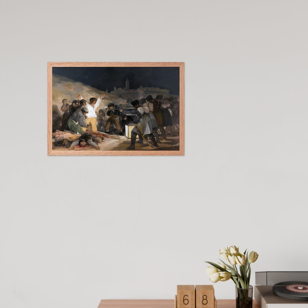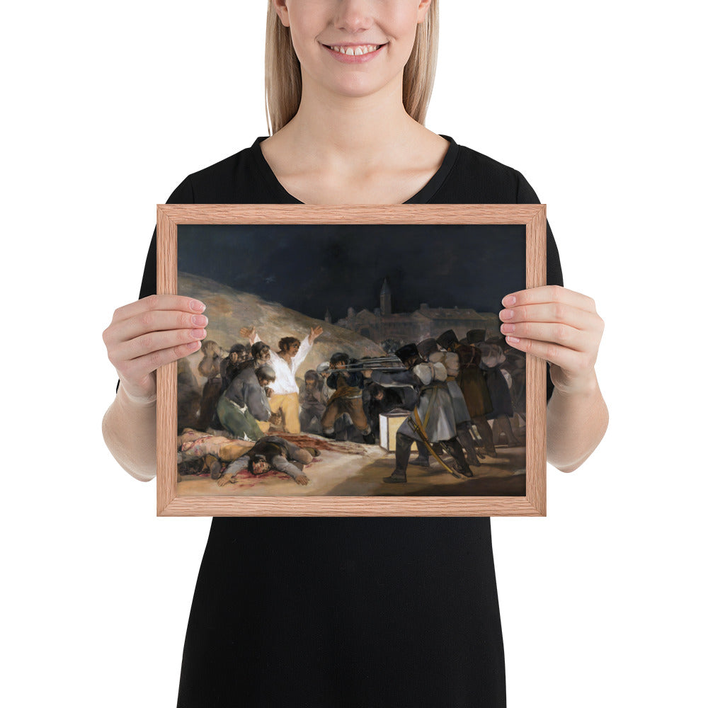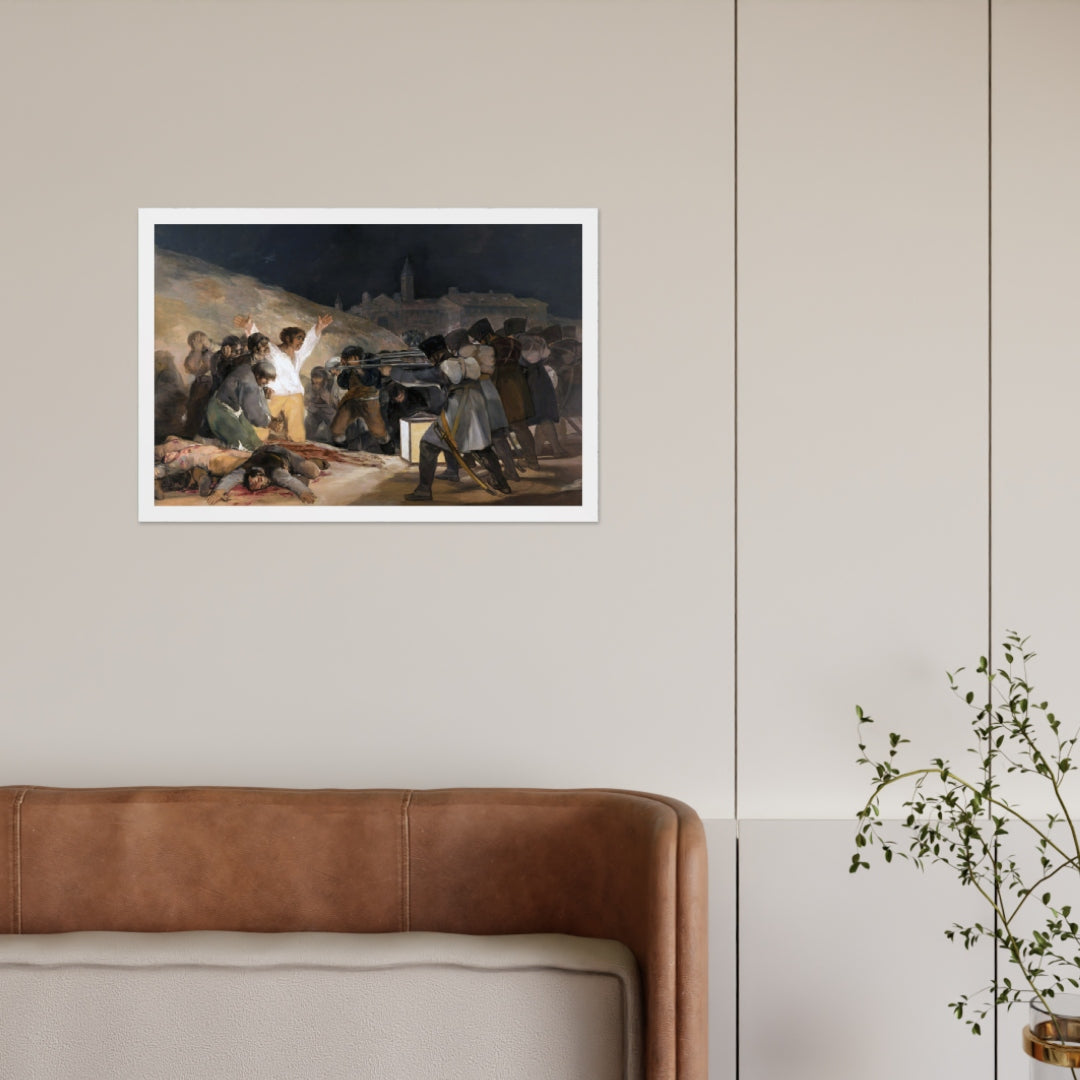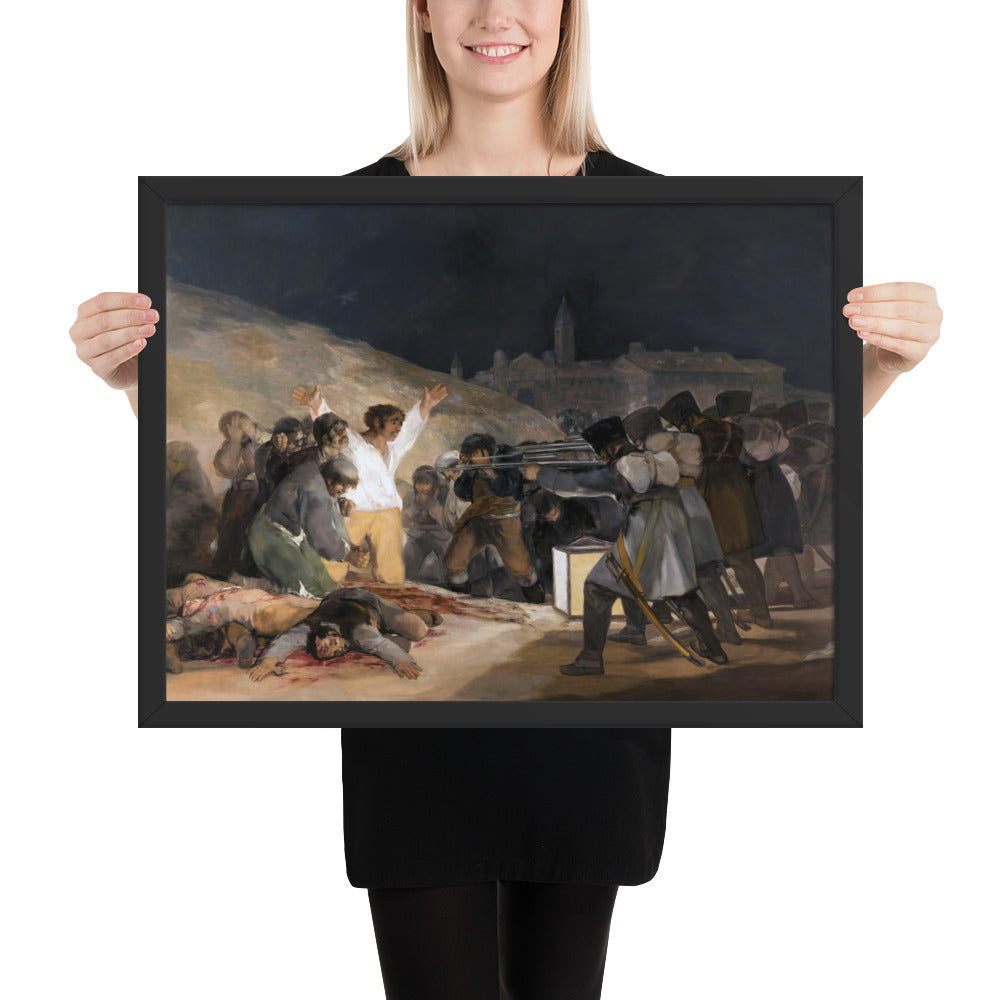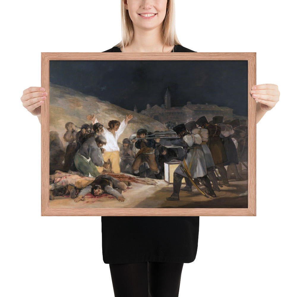 Bring the emotional force of Romanticism into your space with this framed wall print of The Third of May 1808 by Francisco Goya. A searing portrayal of resistance and sacrifice, this iconic artwork captures a moment of brutal execution during the Peninsular War. The central figure—arms raised in surrender and defiance—stands illuminated against the dark backdrop, symbolizing innocence, martyrdom, and the human cost of conflict.