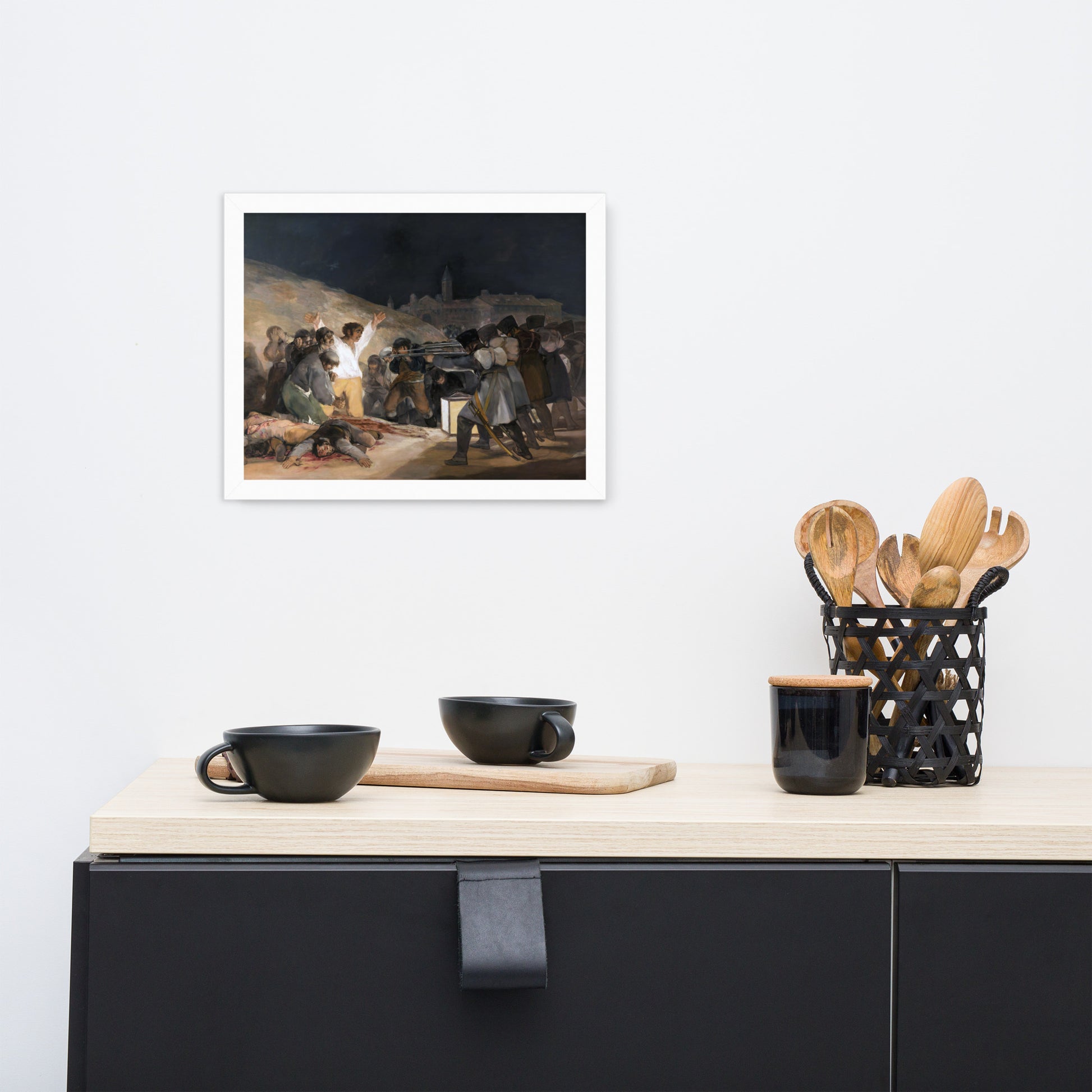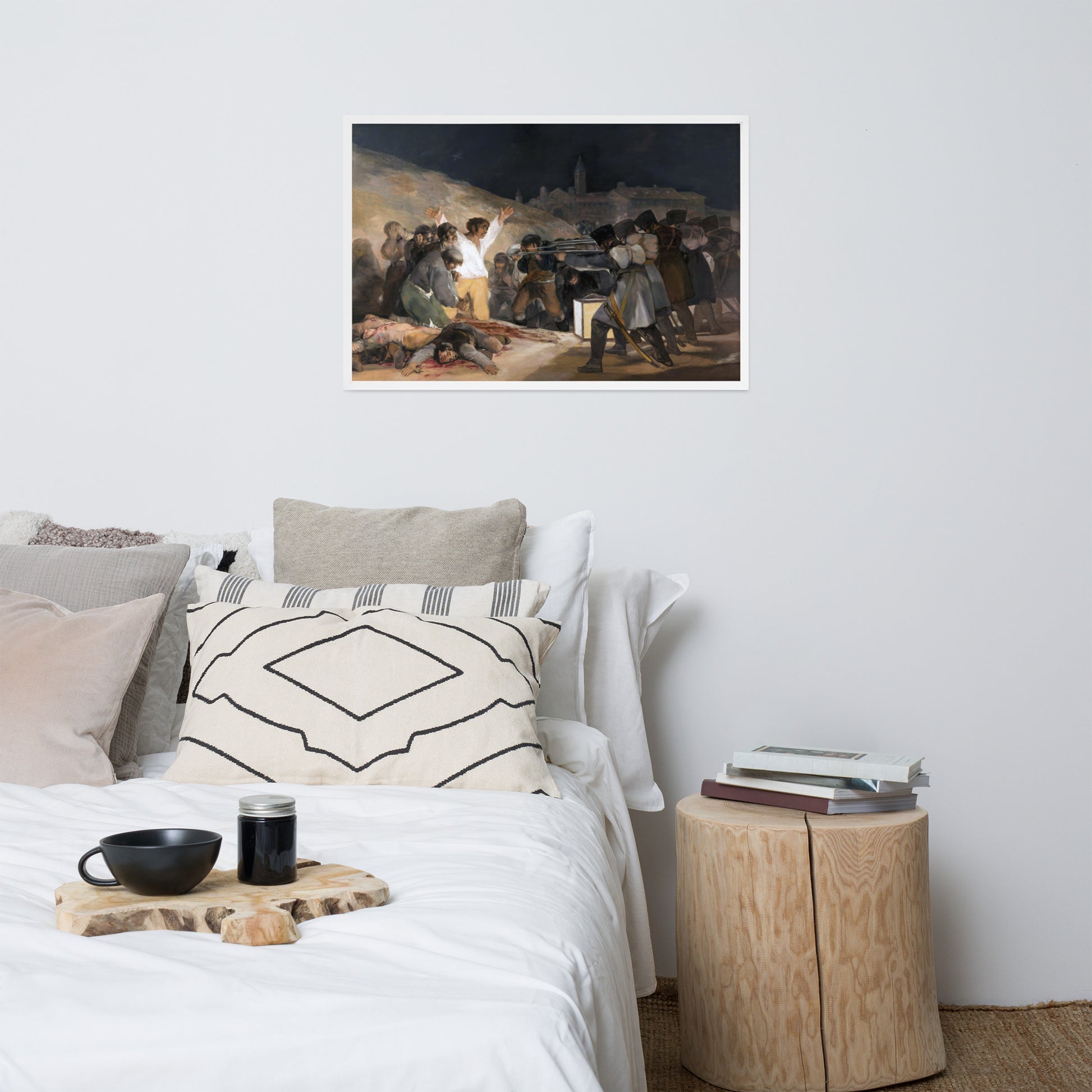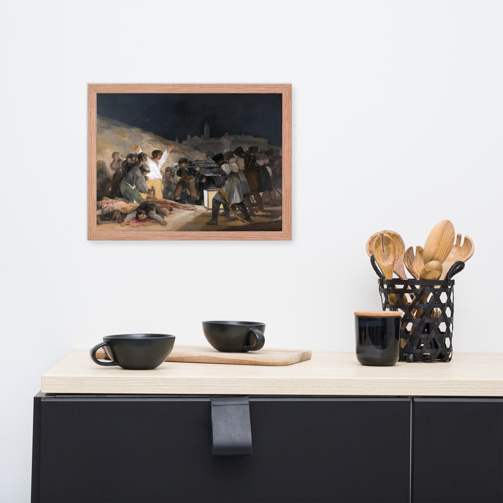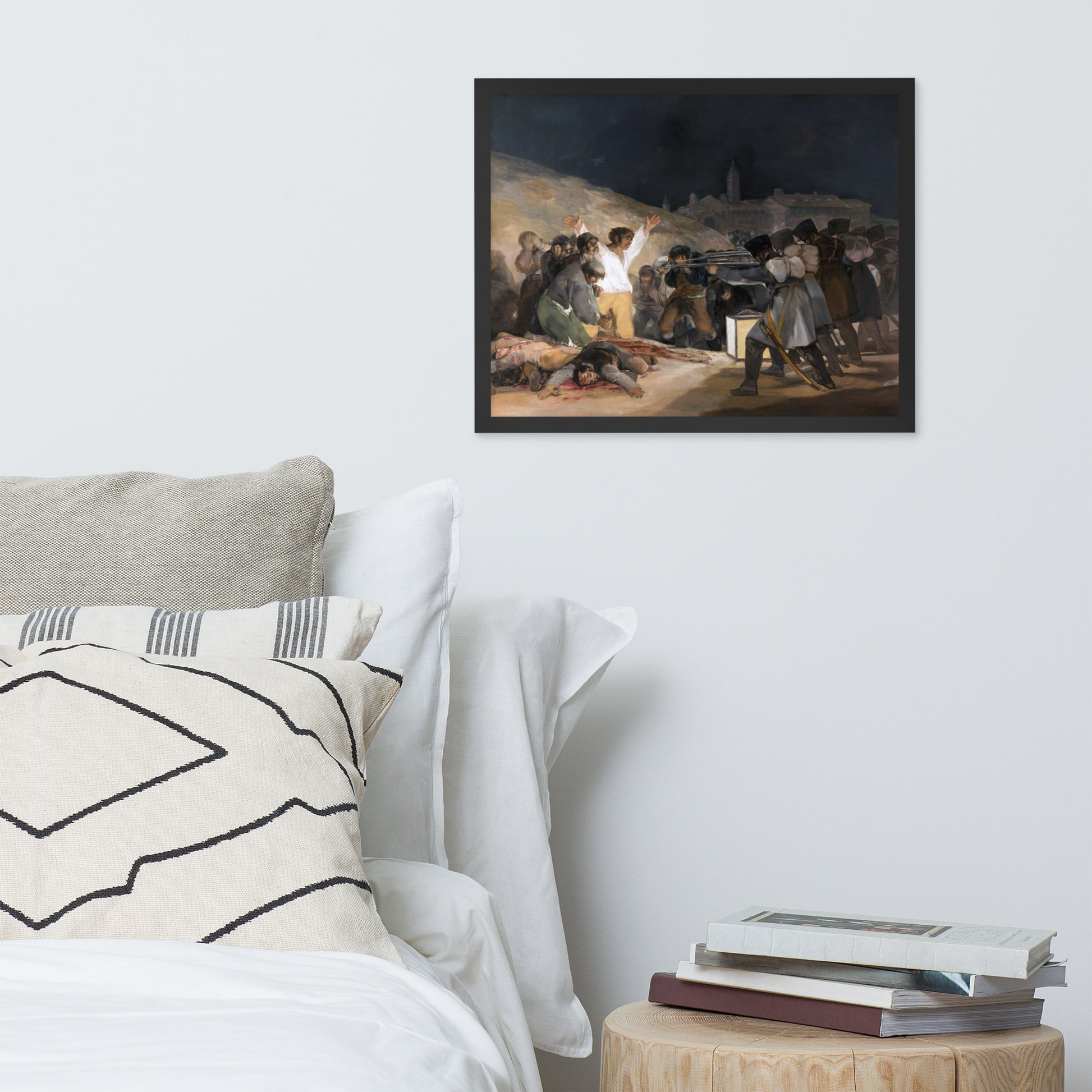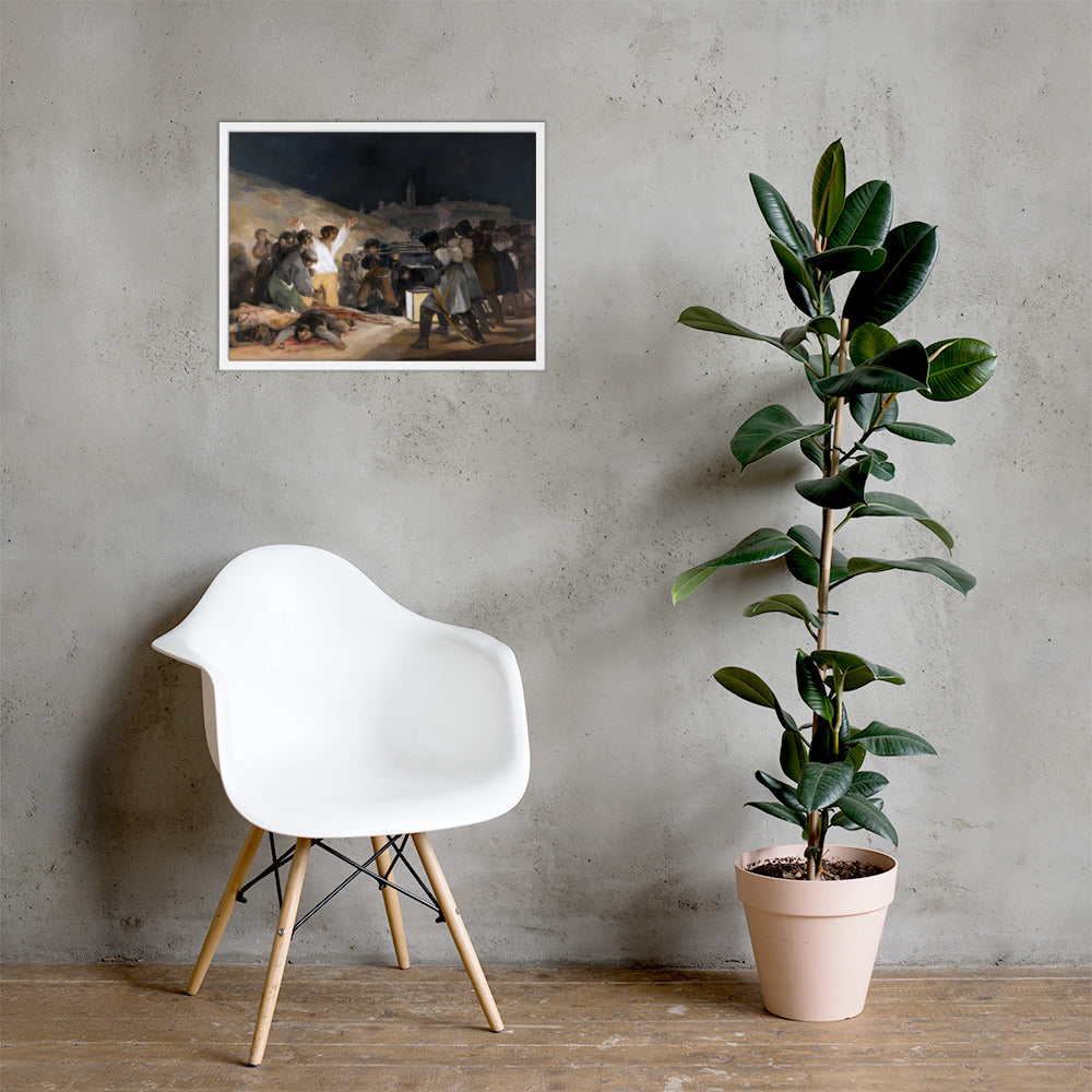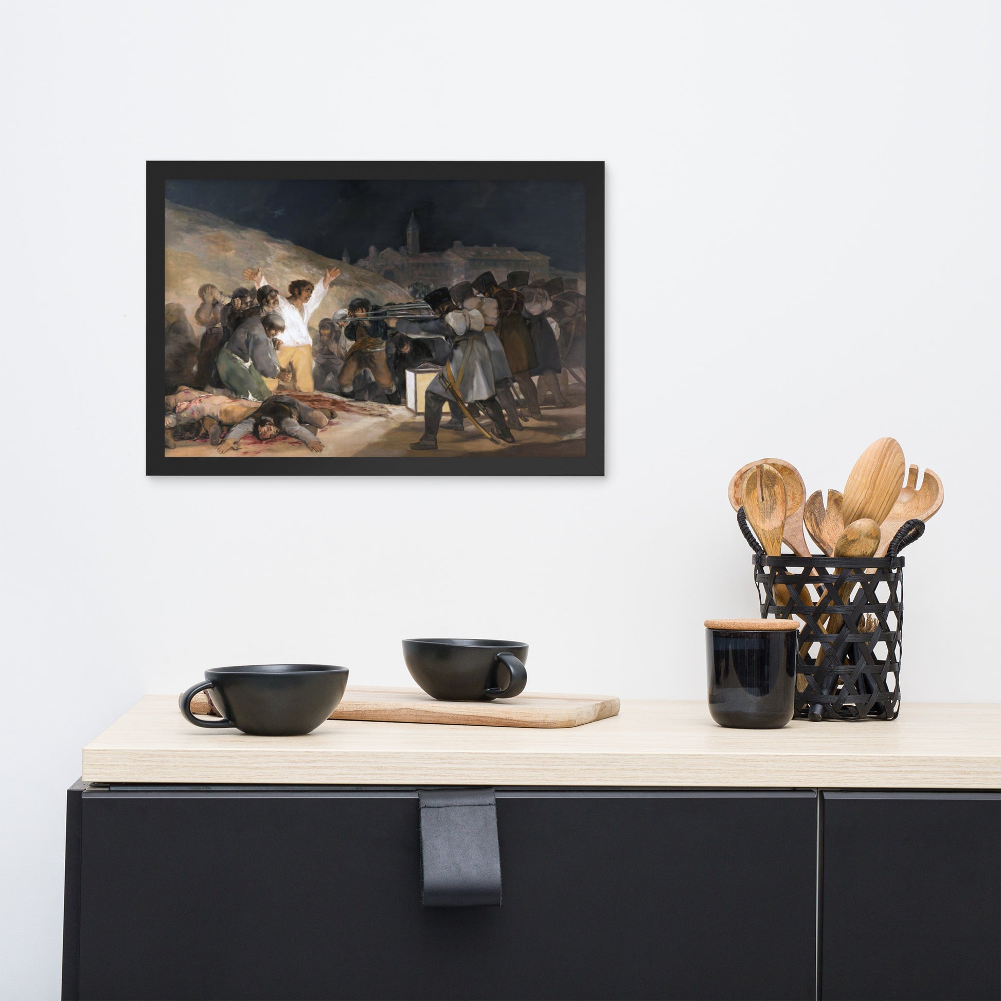 Bring the emotional force of Romanticism into your space with this framed wall print of The Third of May 1808 by Francisco Goya. A searing portrayal of resistance and sacrifice, this iconic artwork captures a moment of brutal execution during the Peninsular War. The central figure—arms raised in surrender and defiance—stands illuminated against the dark backdrop, symbolizing innocence, martyrdom, and the human cost of conflict.