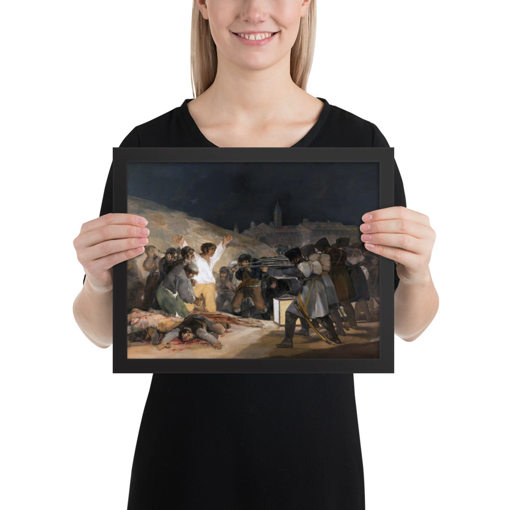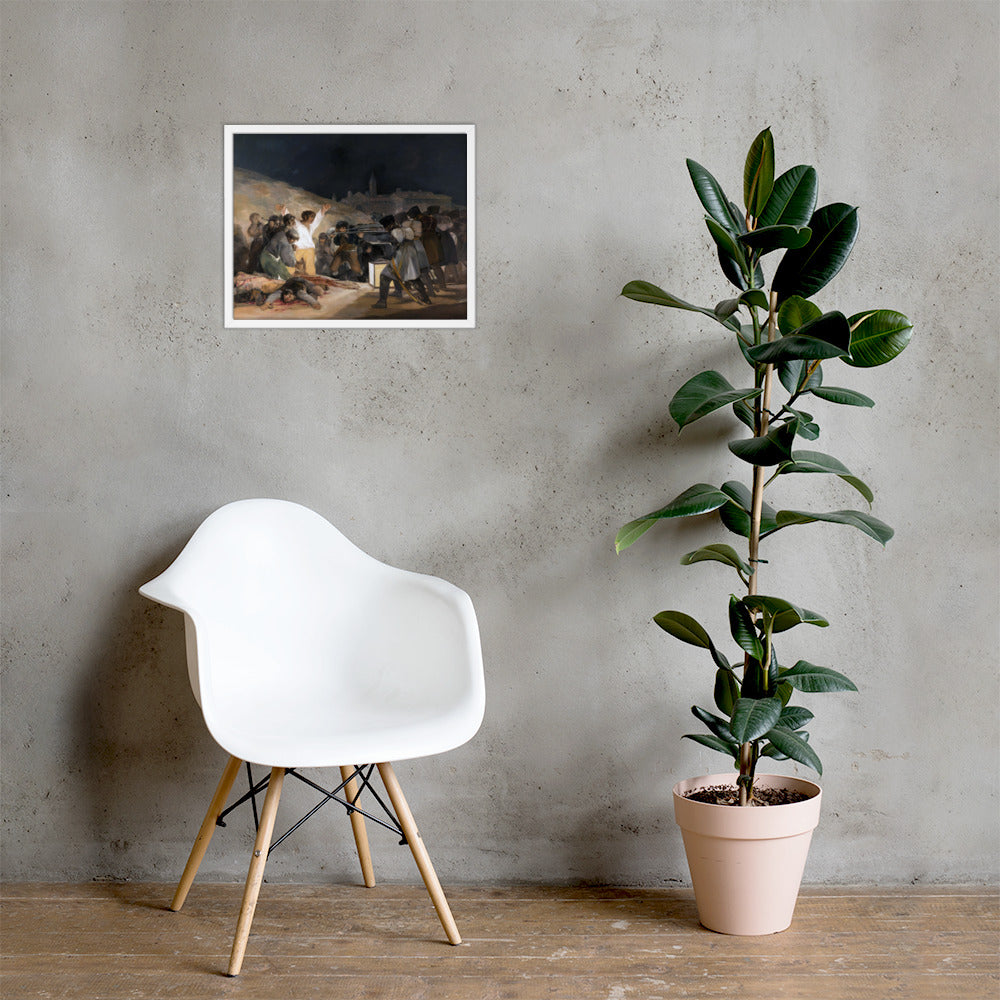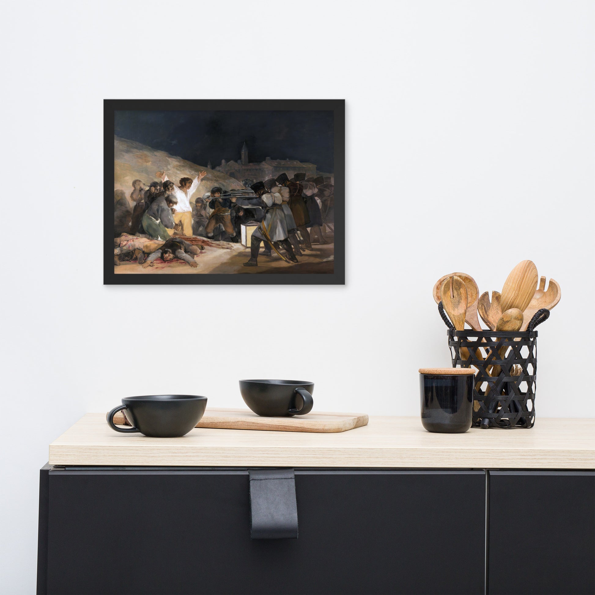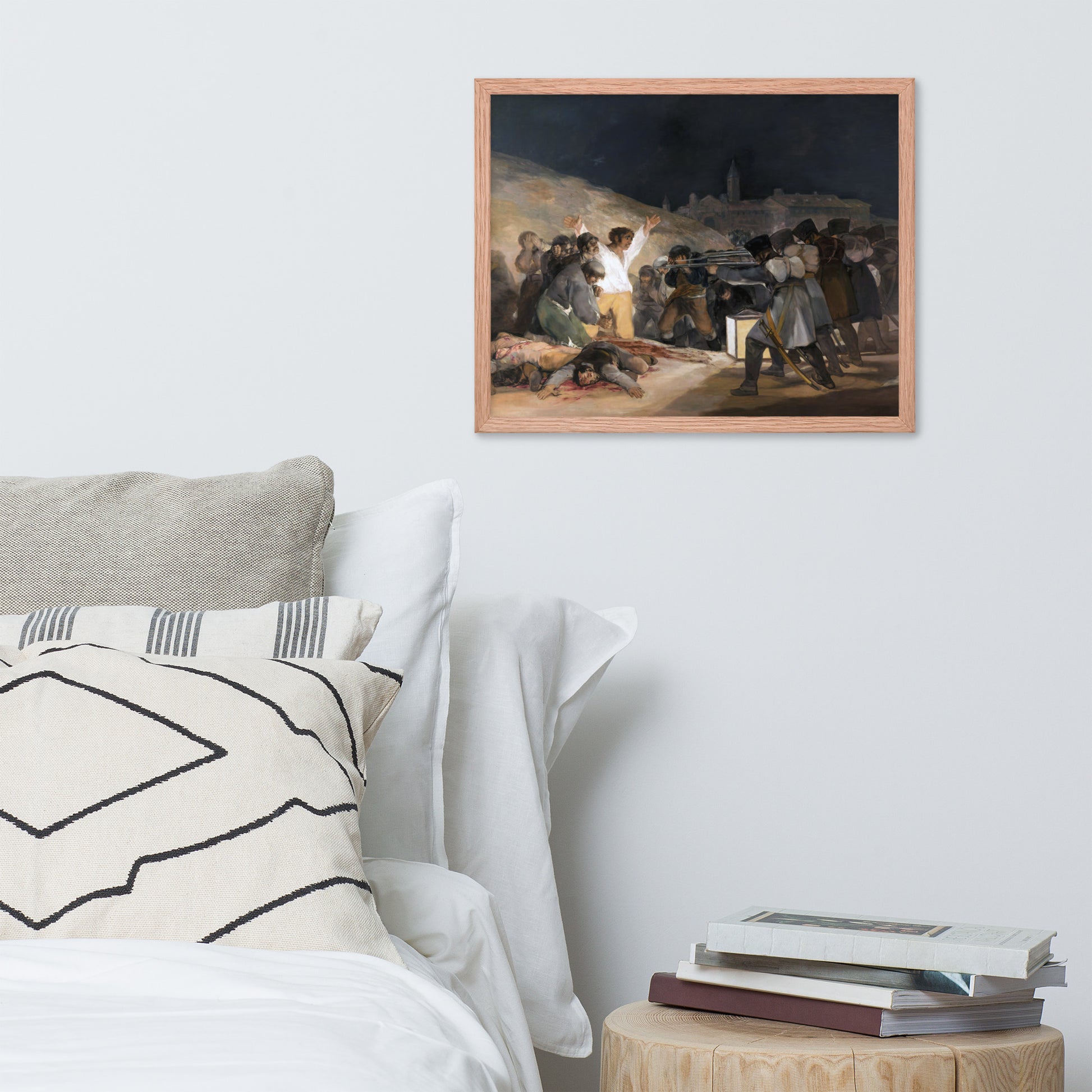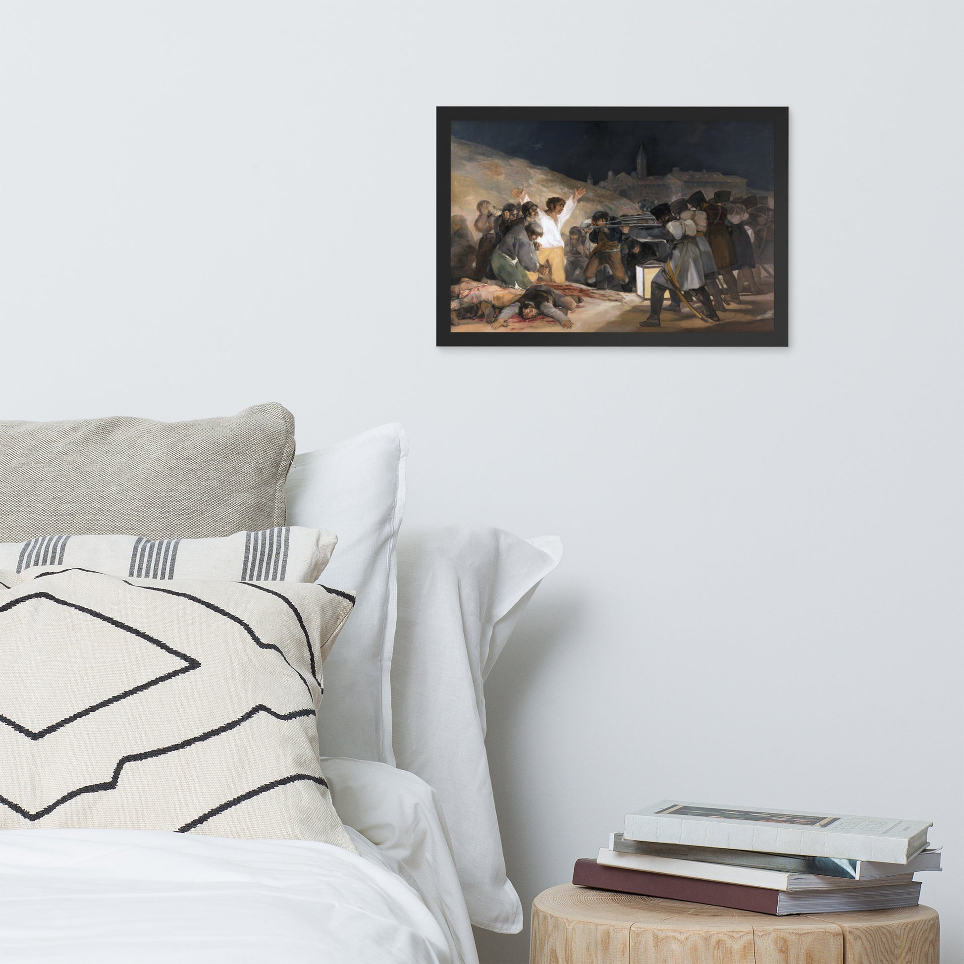 Bring the emotional force of Romanticism into your space with this framed wall print of The Third of May 1808 by Francisco Goya. A searing portrayal of resistance and sacrifice, this iconic artwork captures a moment of brutal execution during the Peninsular War. The central figure—arms raised in surrender and defiance—stands illuminated against the dark backdrop, symbolizing innocence, martyrdom, and the human cost of conflict.