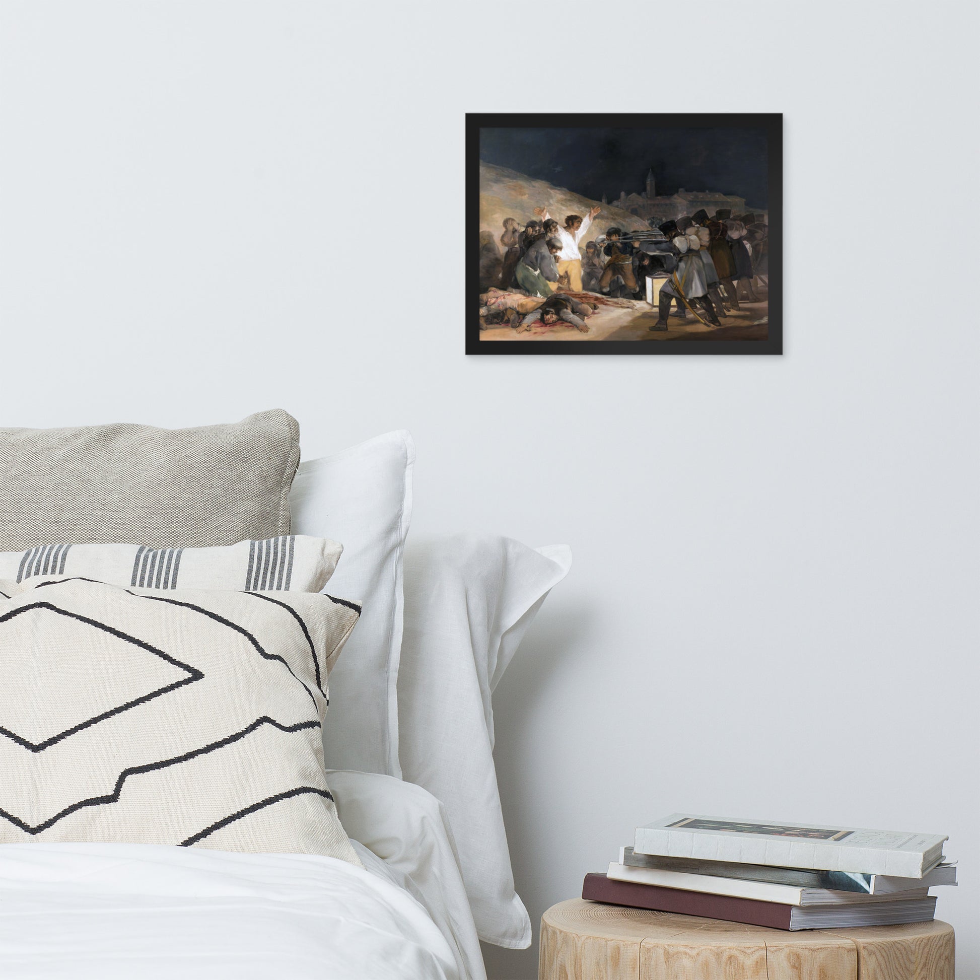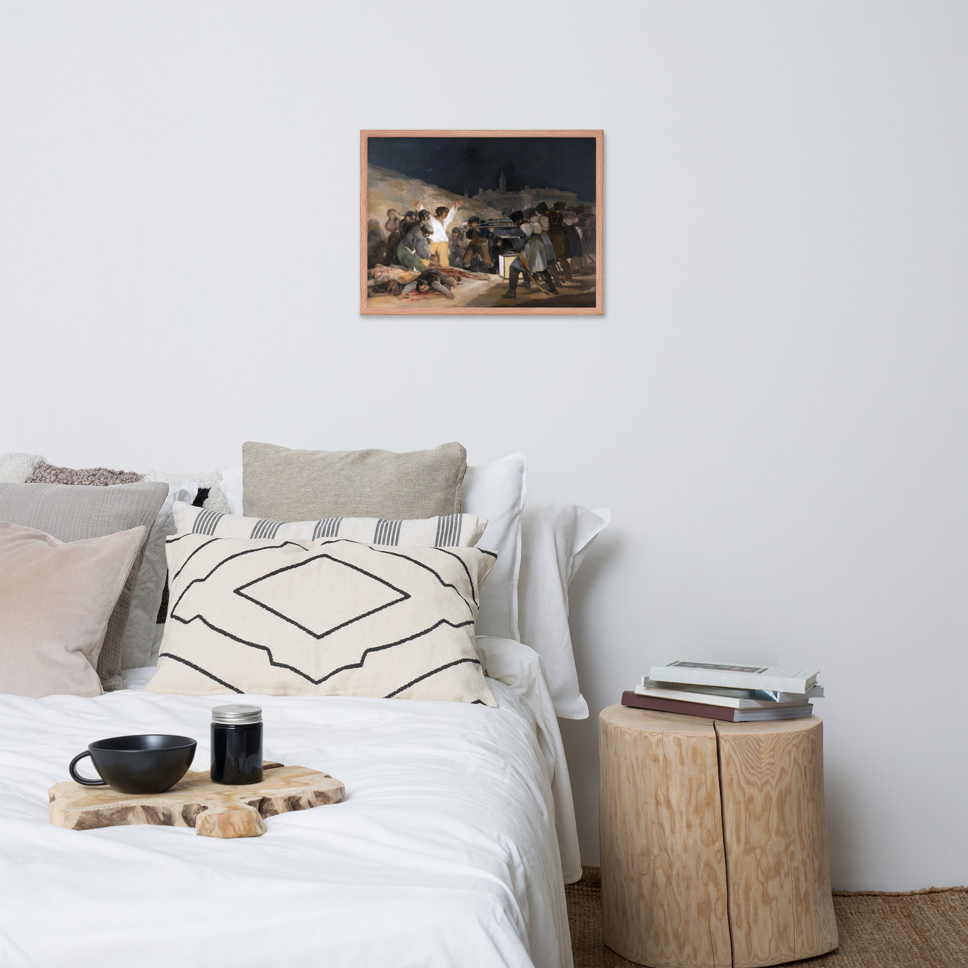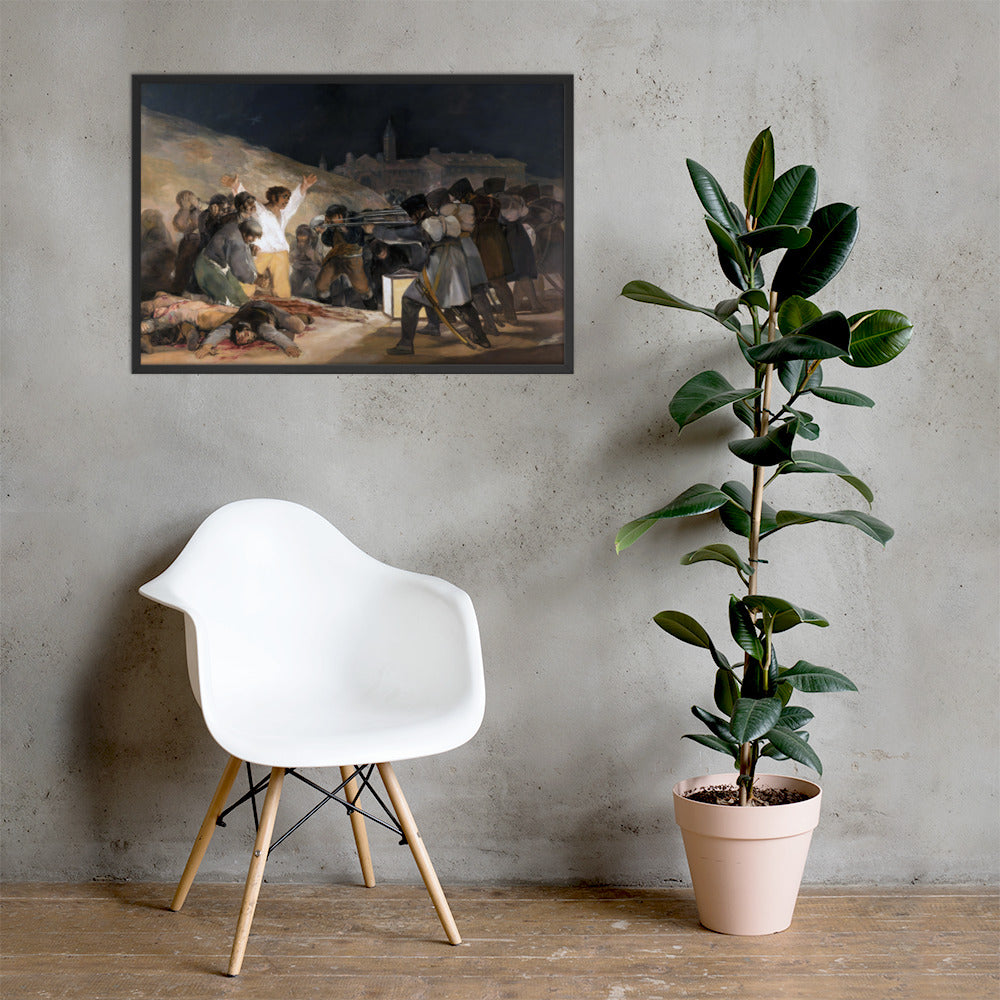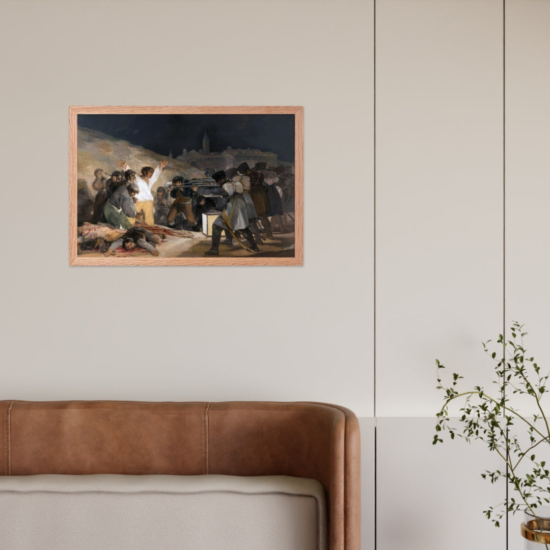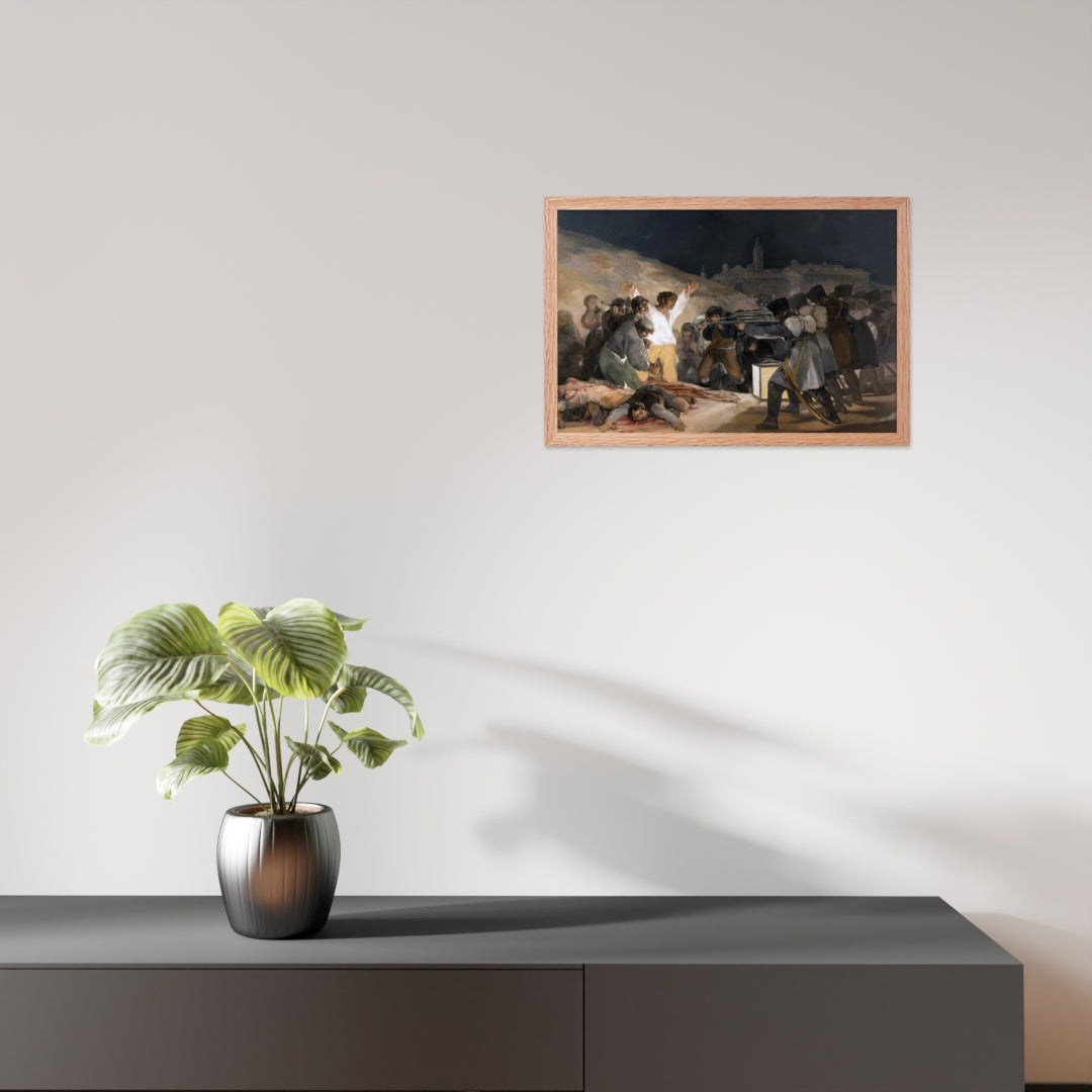 Bring the emotional force of Romanticism into your space with this framed wall print of The Third of May 1808 by Francisco Goya. A searing portrayal of resistance and sacrifice, this iconic artwork captures a moment of brutal execution during the Peninsular War. The central figure—arms raised in surrender and defiance—stands illuminated against the dark backdrop, symbolizing innocence, martyrdom, and the human cost of conflict.