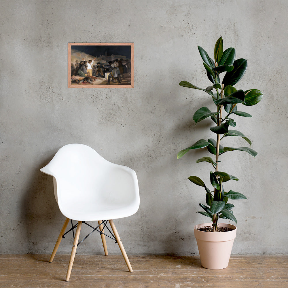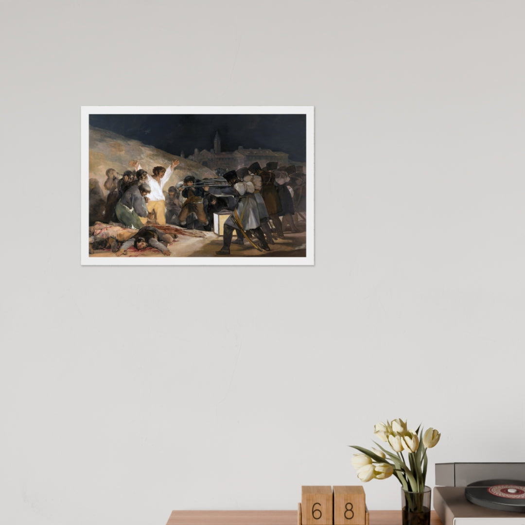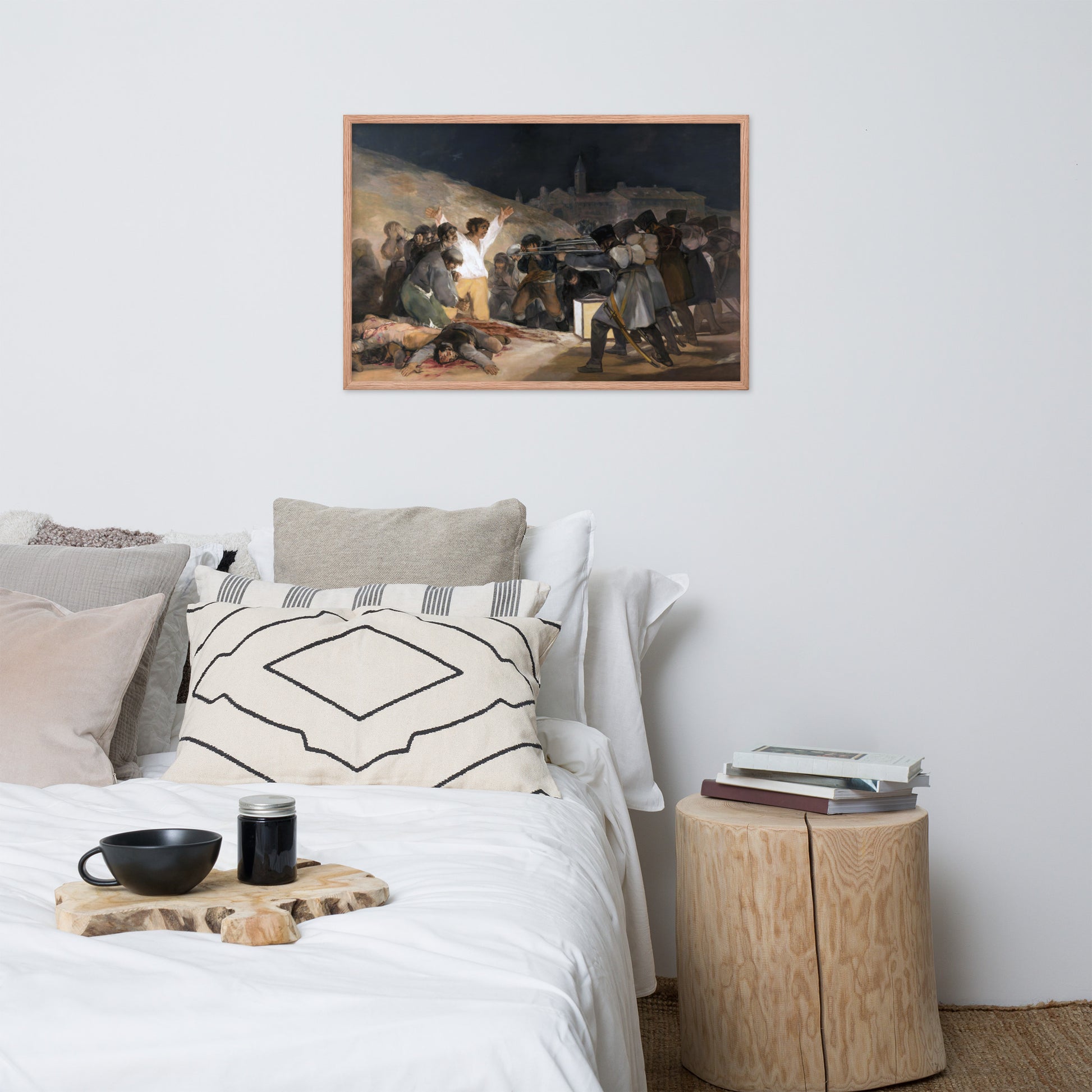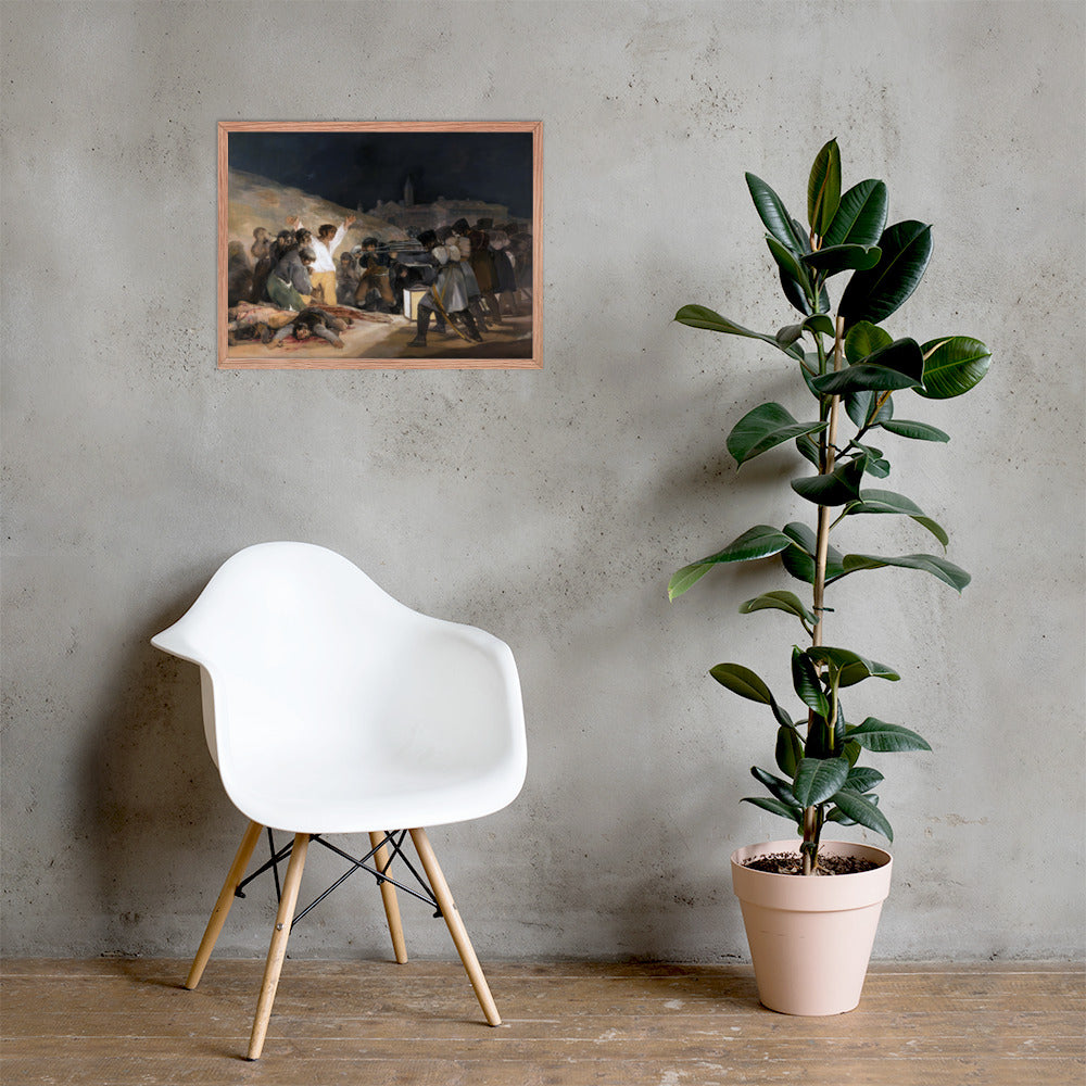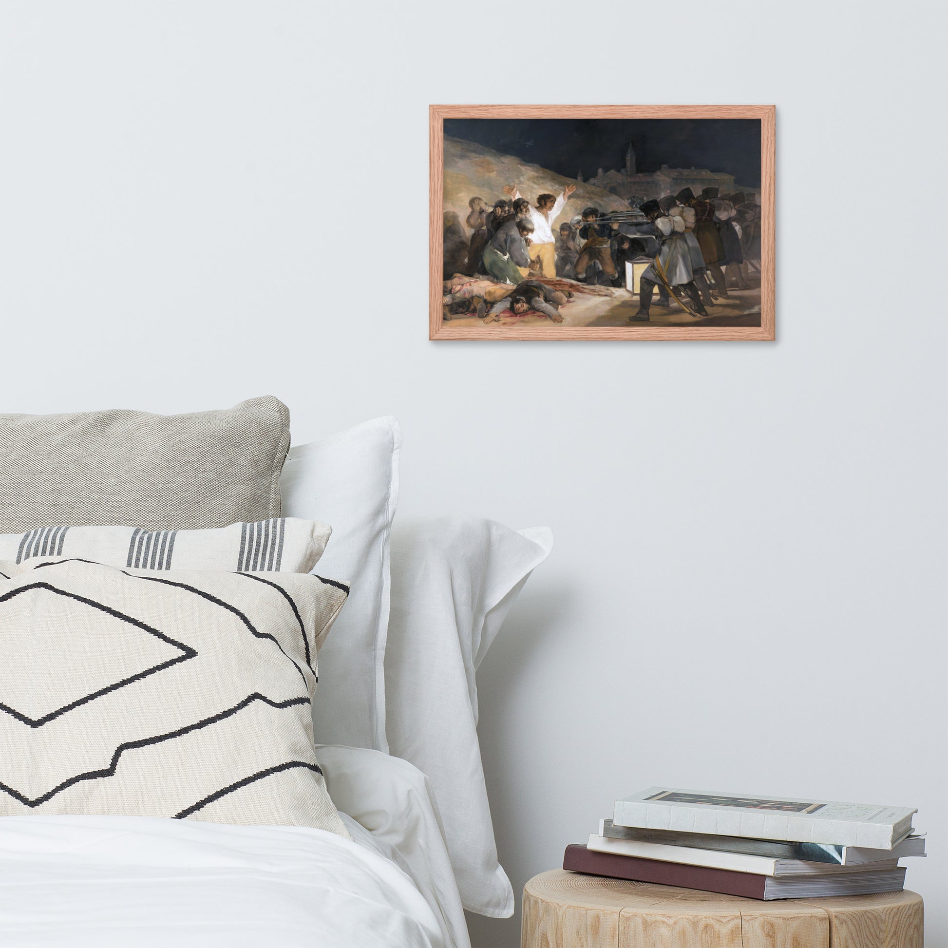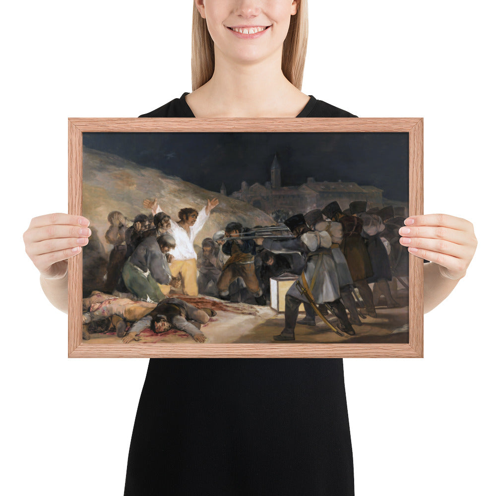 Bring the emotional force of Romanticism into your space with this framed wall print of The Third of May 1808 by Francisco Goya. A searing portrayal of resistance and sacrifice, this iconic artwork captures a moment of brutal execution during the Peninsular War. The central figure—arms raised in surrender and defiance—stands illuminated against the dark backdrop, symbolizing innocence, martyrdom, and the human cost of conflict.