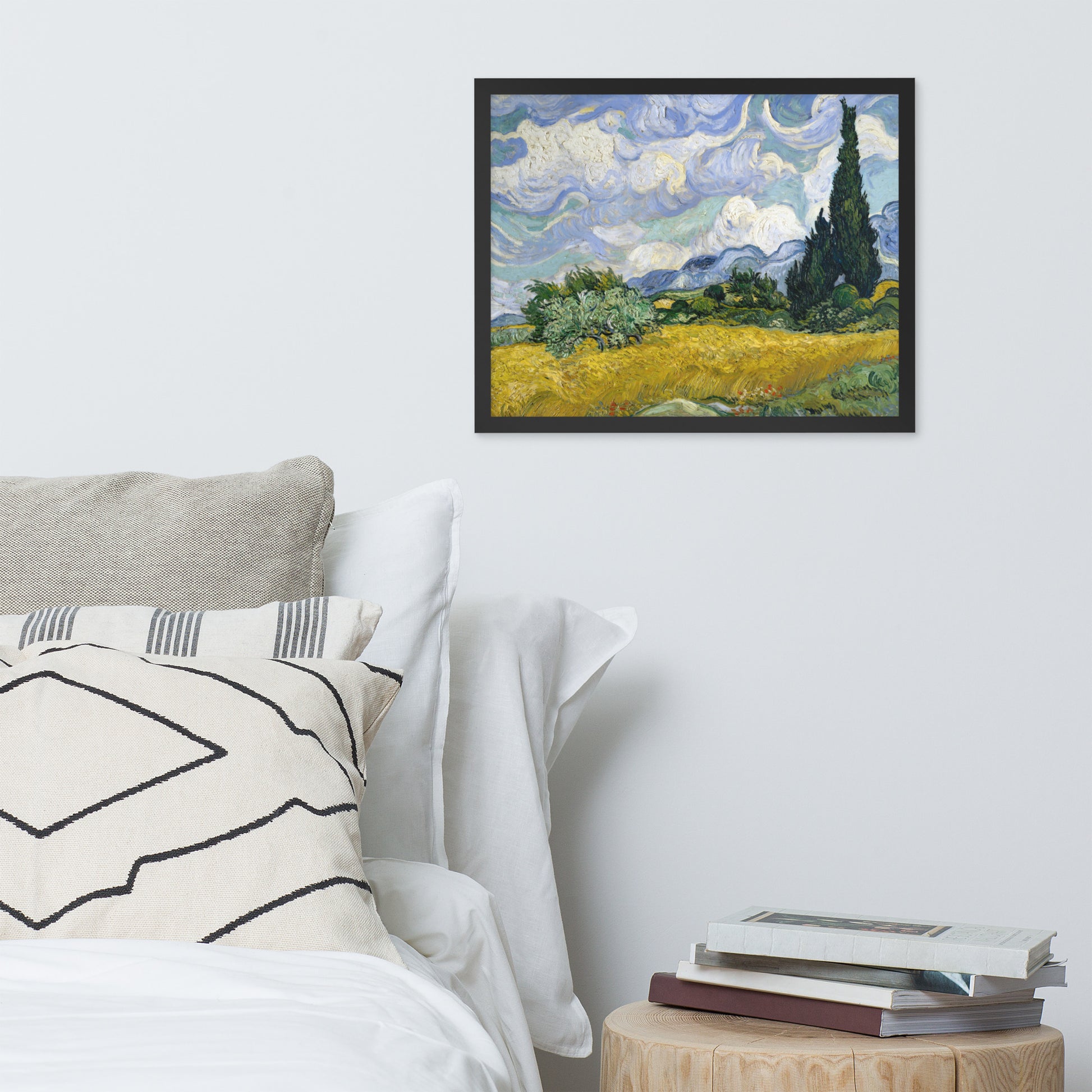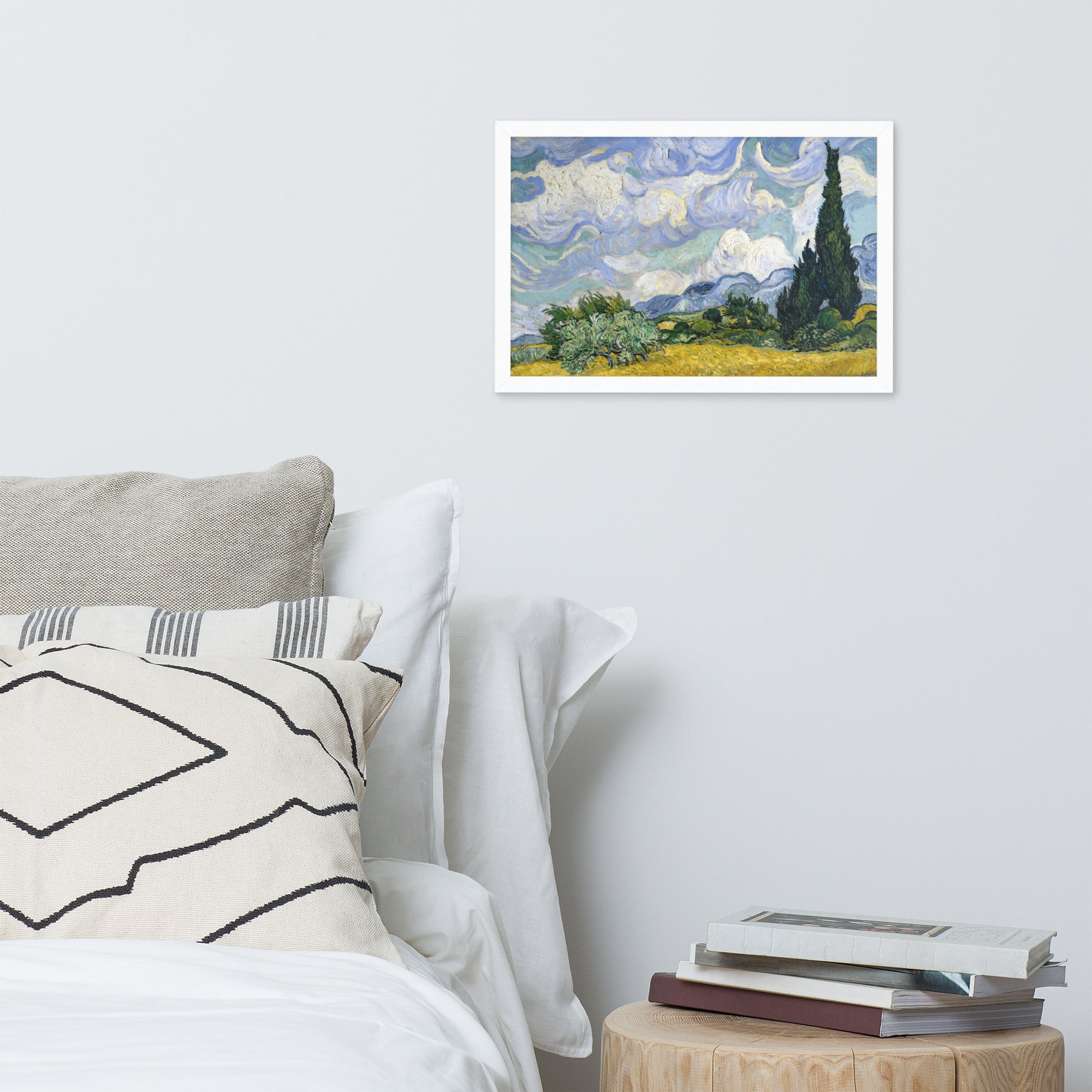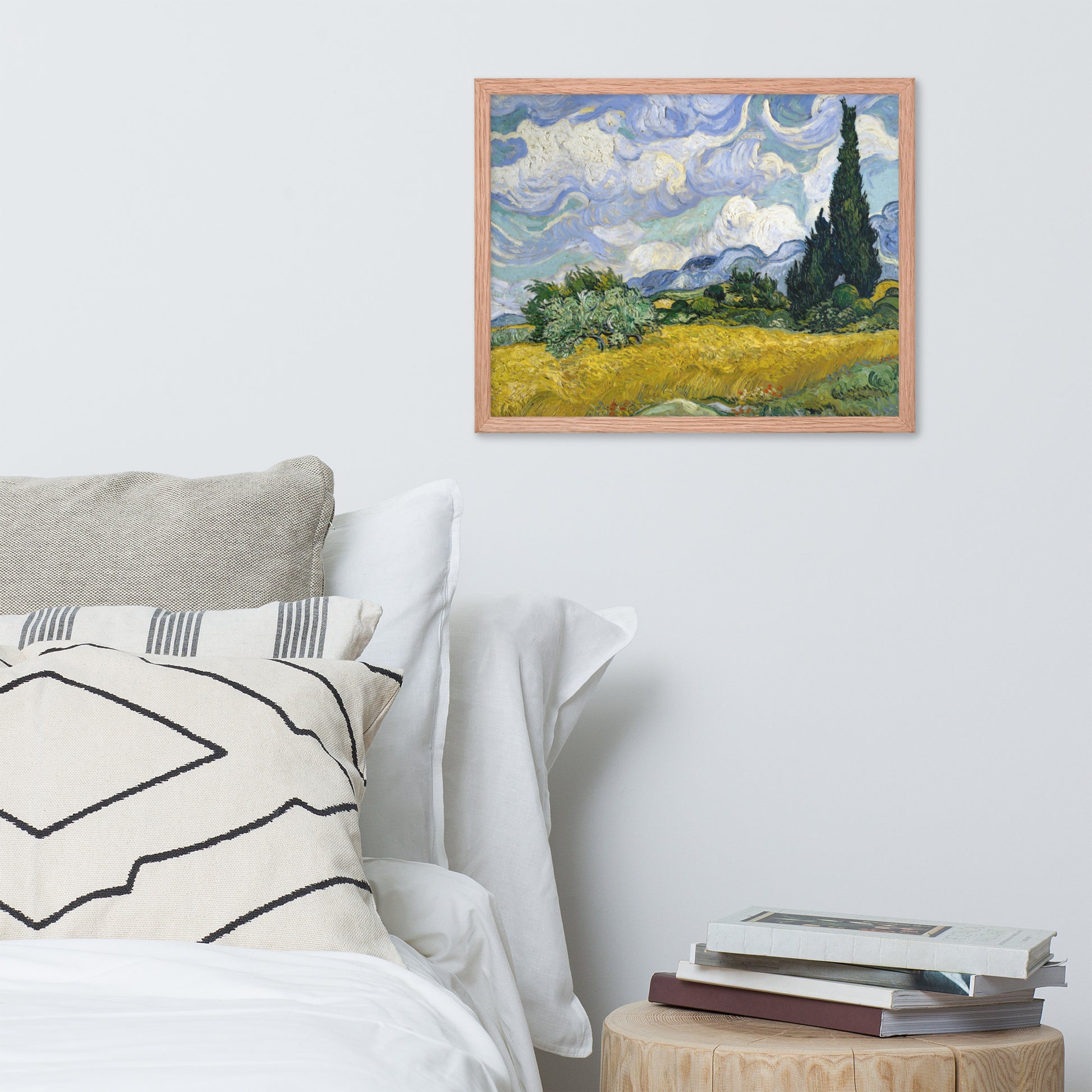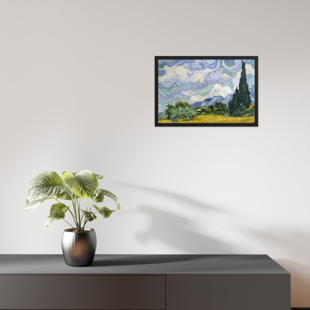 Bring the golden warmth of the countryside into your space with Wheat Fields with Cypresses by Vincent van Gogh. This iconic impressionist artwork captures the swirling energy of nature through bold brushstrokes and vibrant color. The golden wheat field, dramatic cypress trees, and expressive sky evoke a sense of movement and emotion that defines van Gogh’s post-impressionist style.