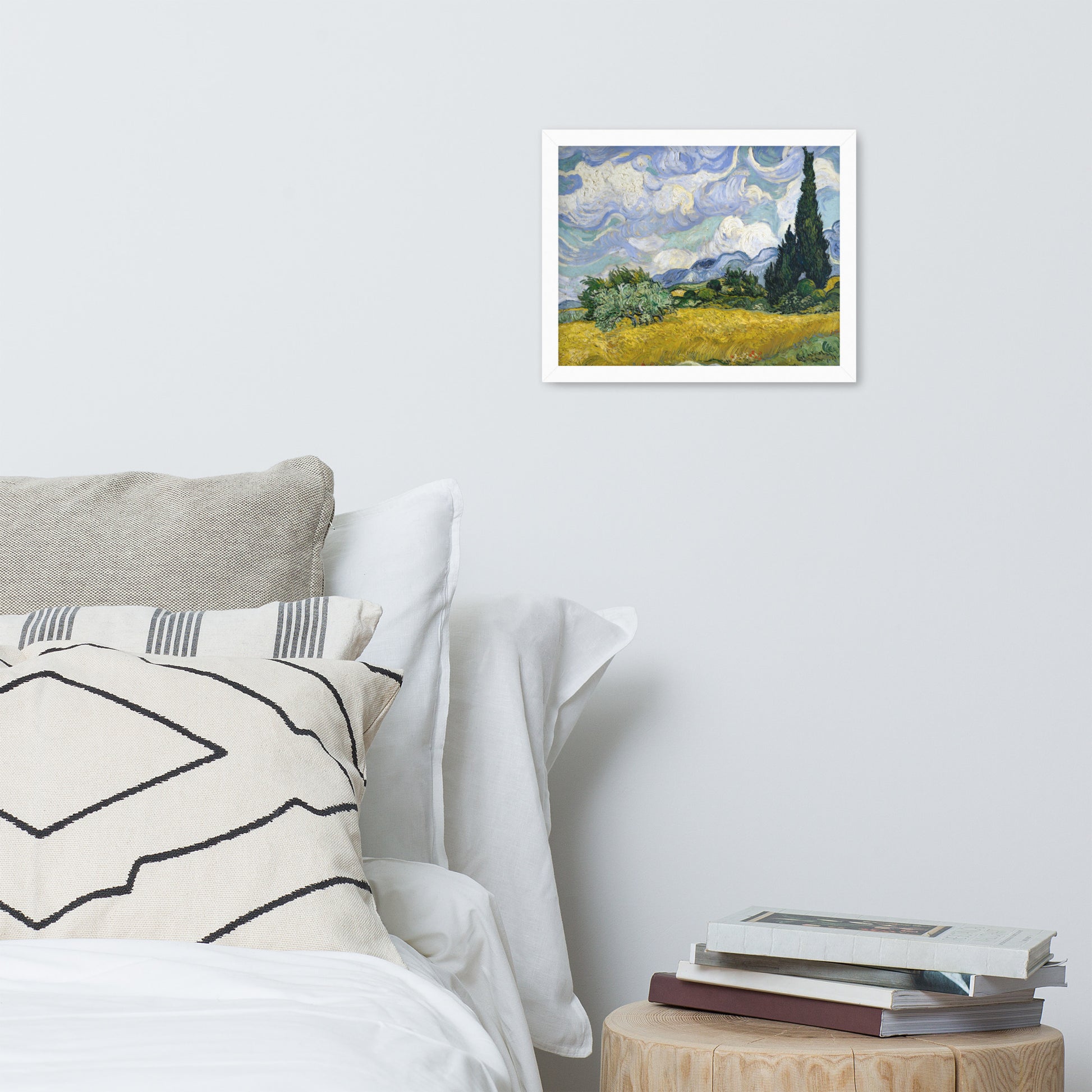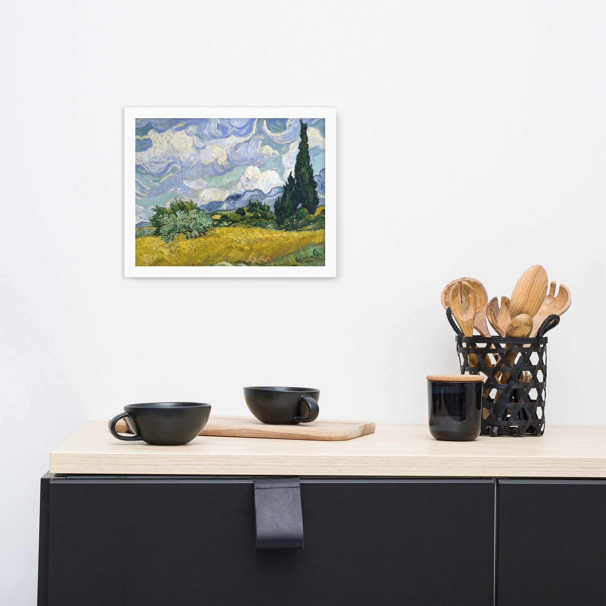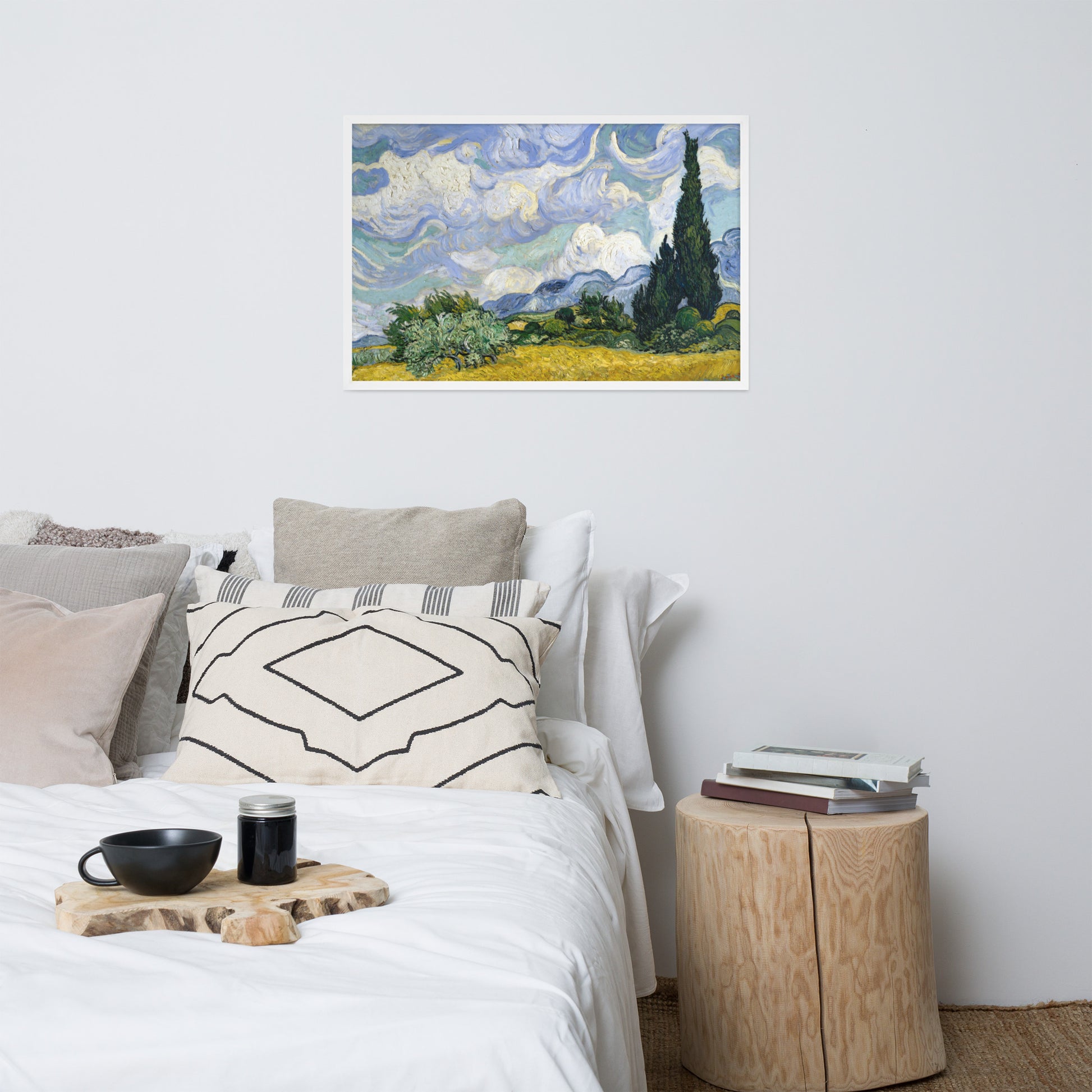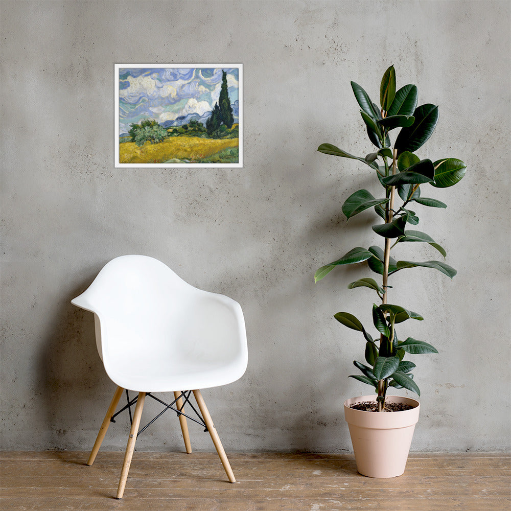 Bring the golden warmth of the countryside into your space with Wheat Fields with Cypresses by Vincent van Gogh. This iconic impressionist artwork captures the swirling energy of nature through bold brushstrokes and vibrant color. The golden wheat field, dramatic cypress trees, and expressive sky evoke a sense of movement and emotion that defines van Gogh’s post-impressionist style.