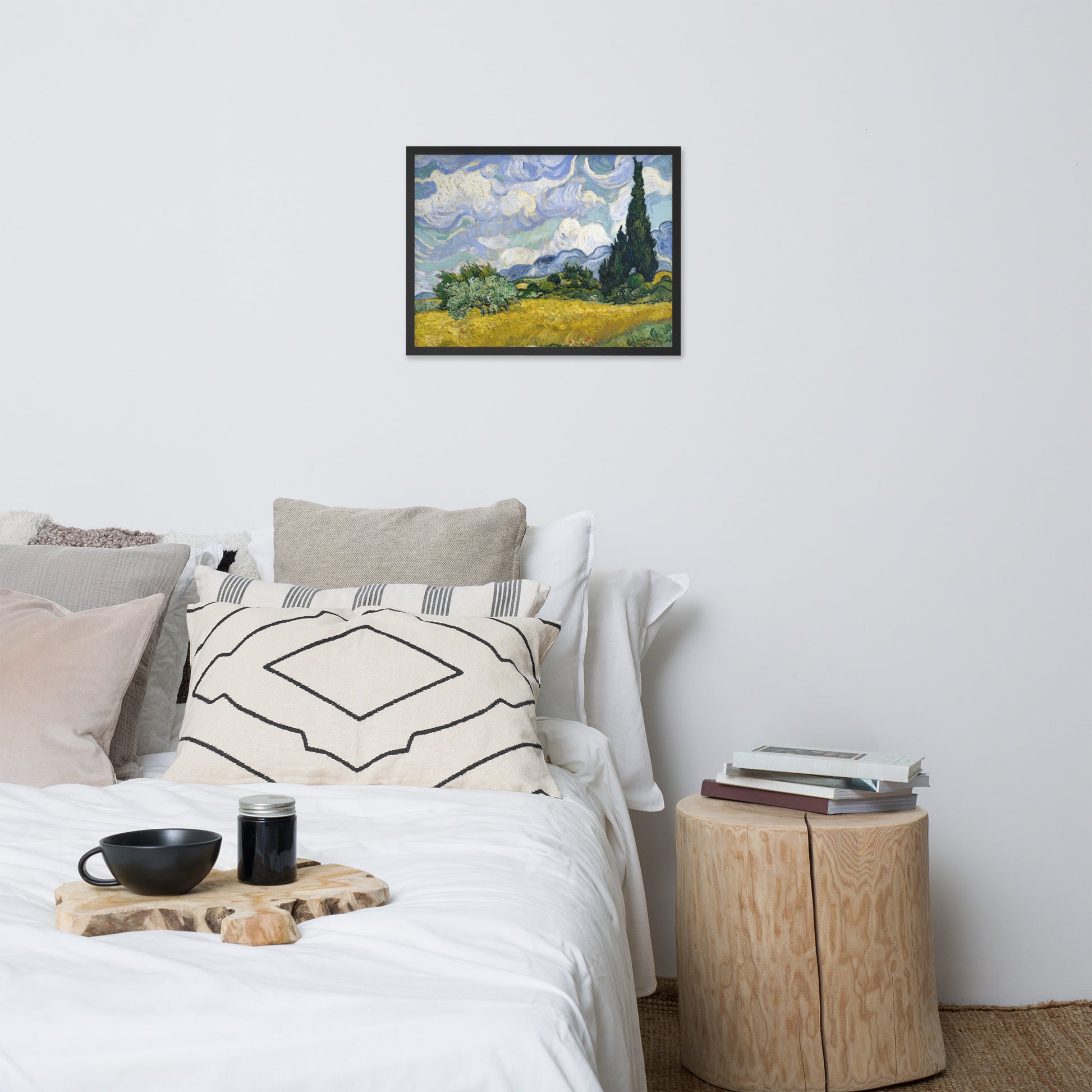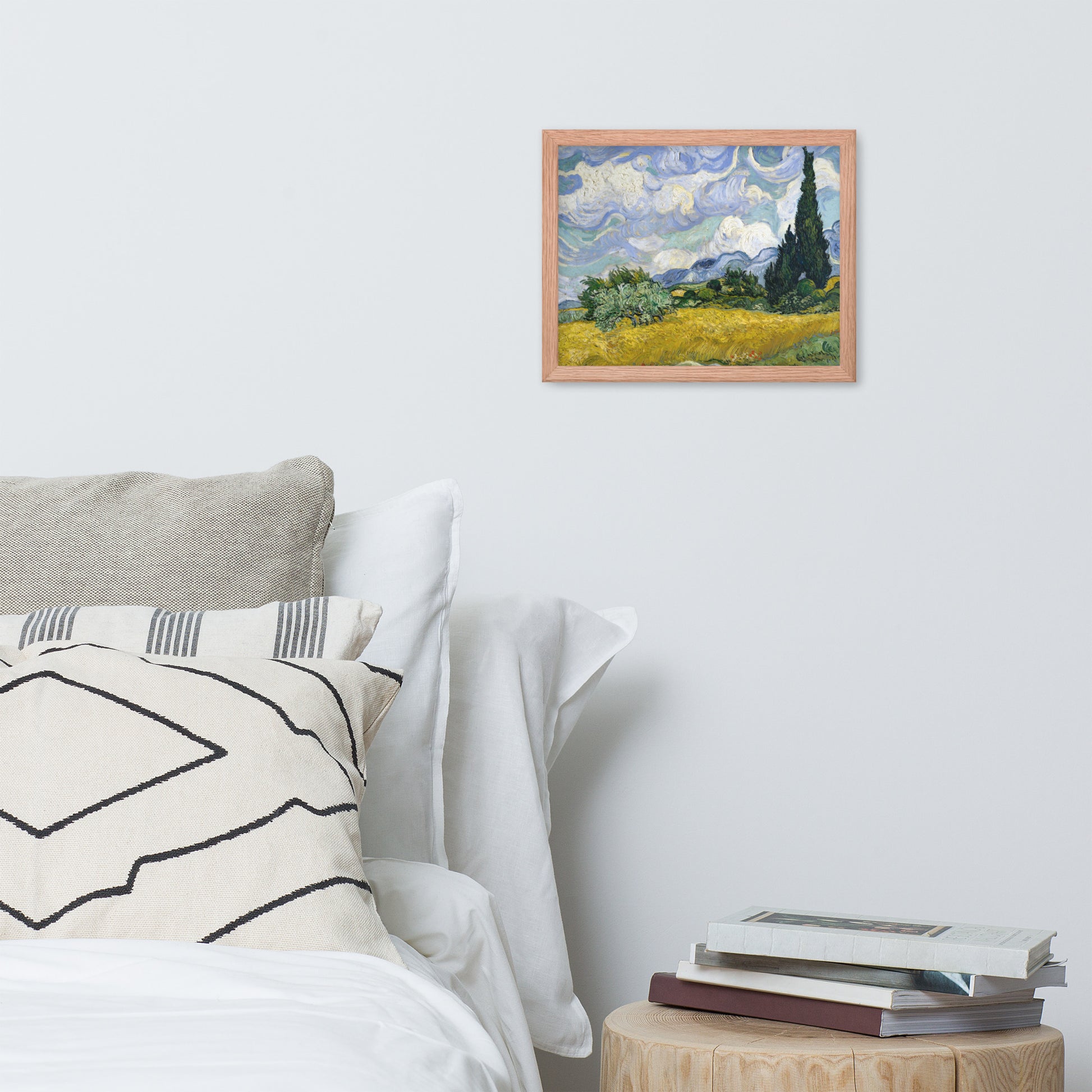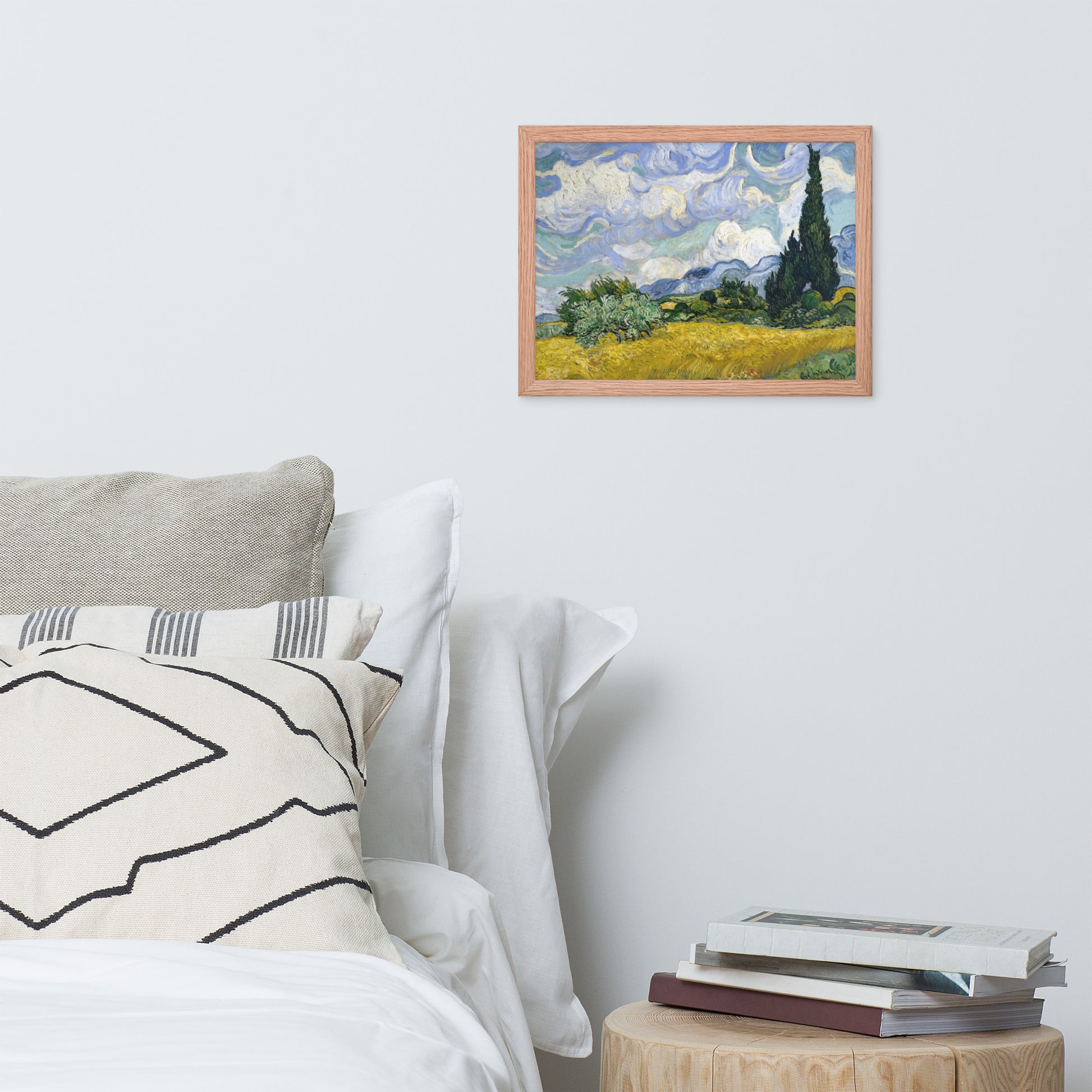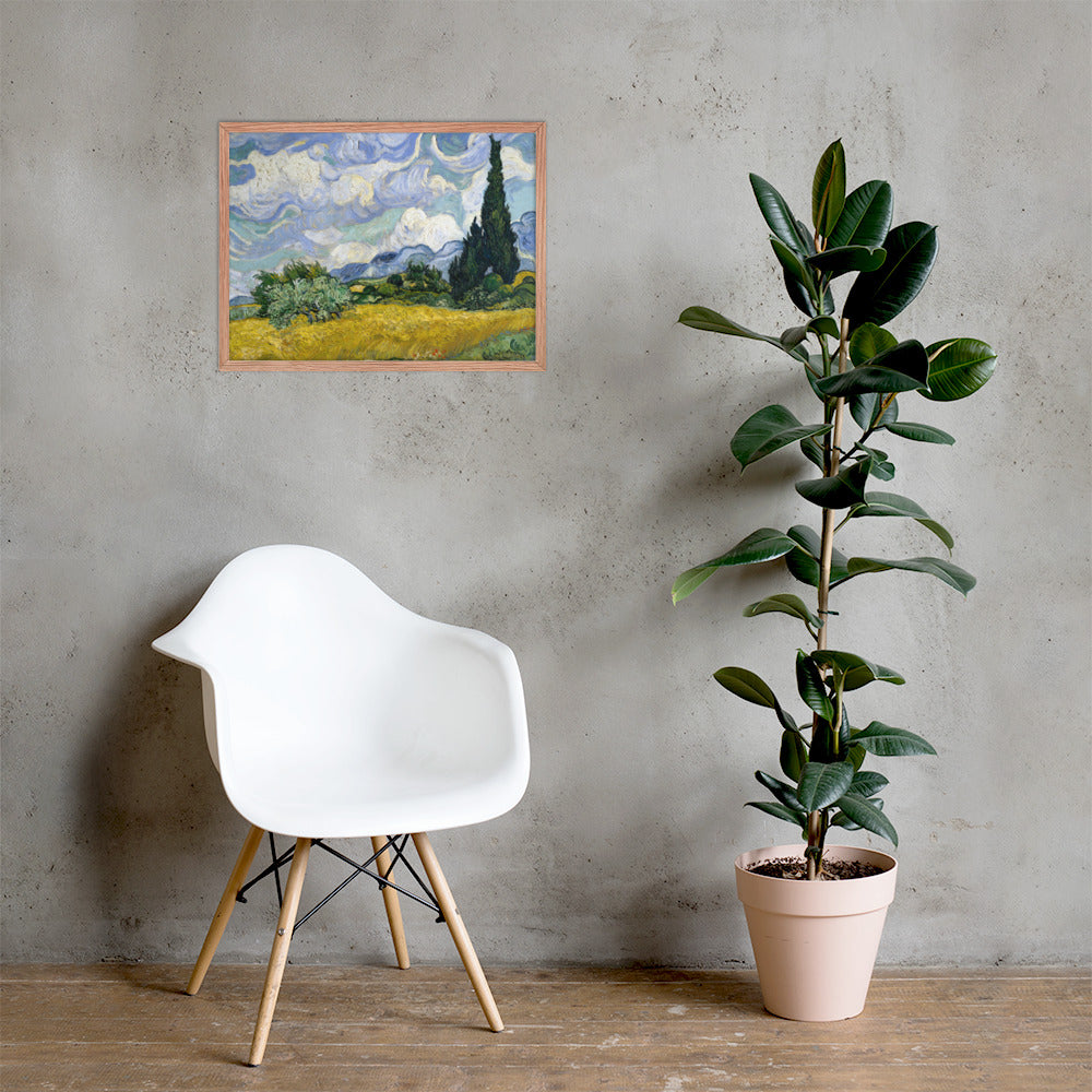 Bring the golden warmth of the countryside into your space with Wheat Fields with Cypresses by Vincent van Gogh. This iconic impressionist artwork captures the swirling energy of nature through bold brushstrokes and vibrant color. The golden wheat field, dramatic cypress trees, and expressive sky evoke a sense of movement and emotion that defines van Gogh’s post-impressionist style.