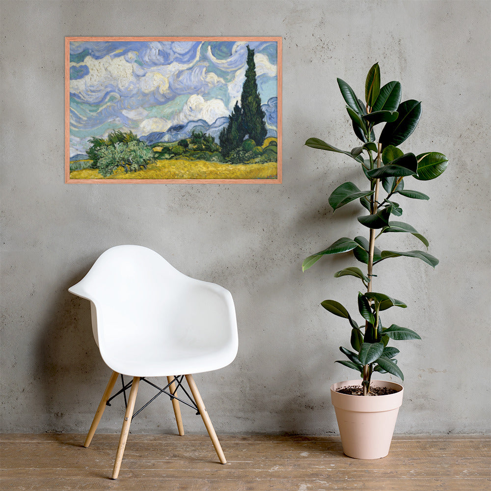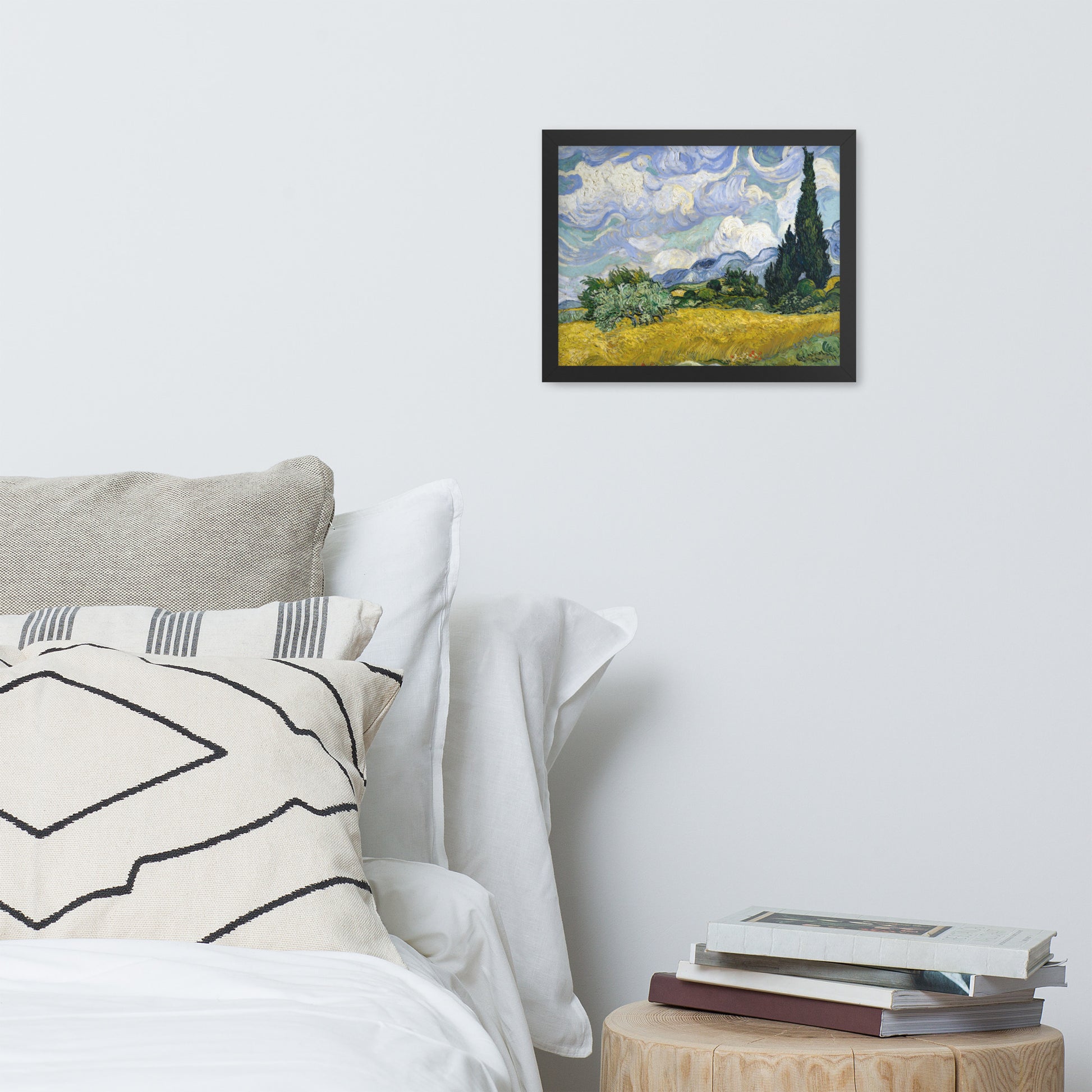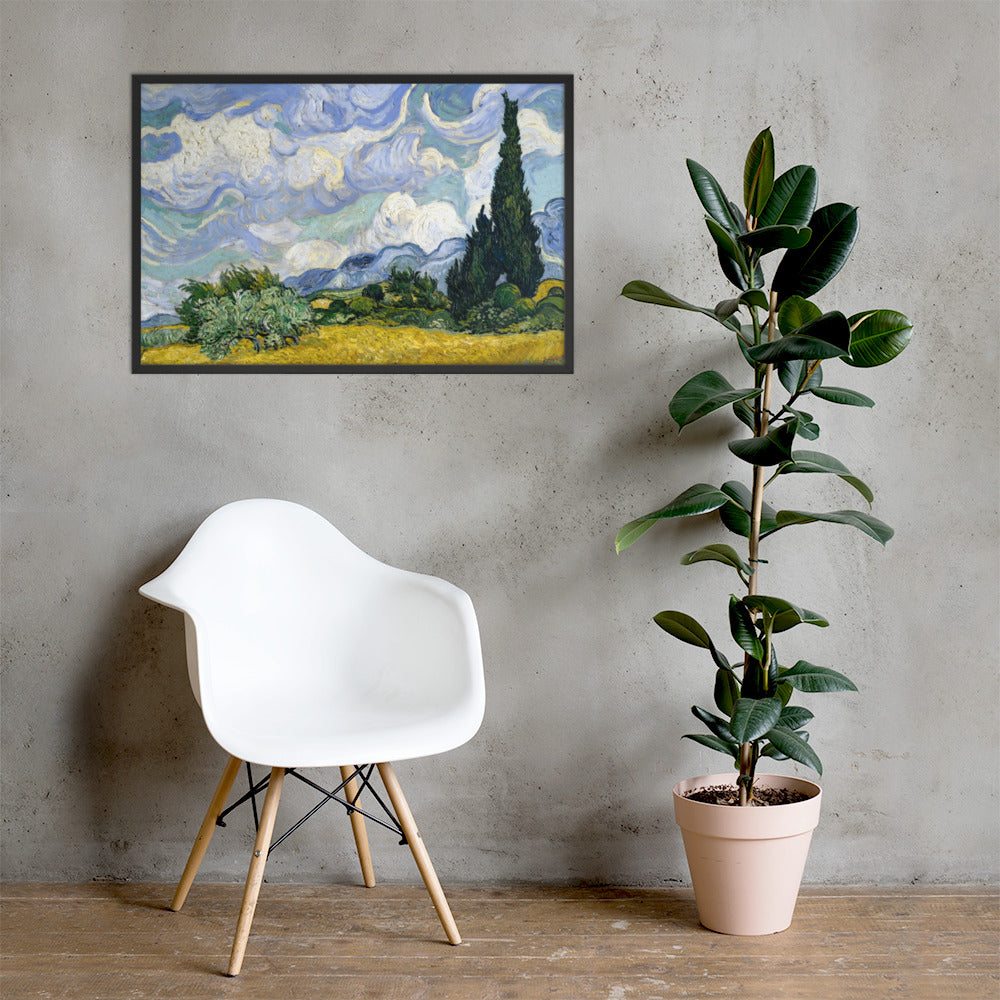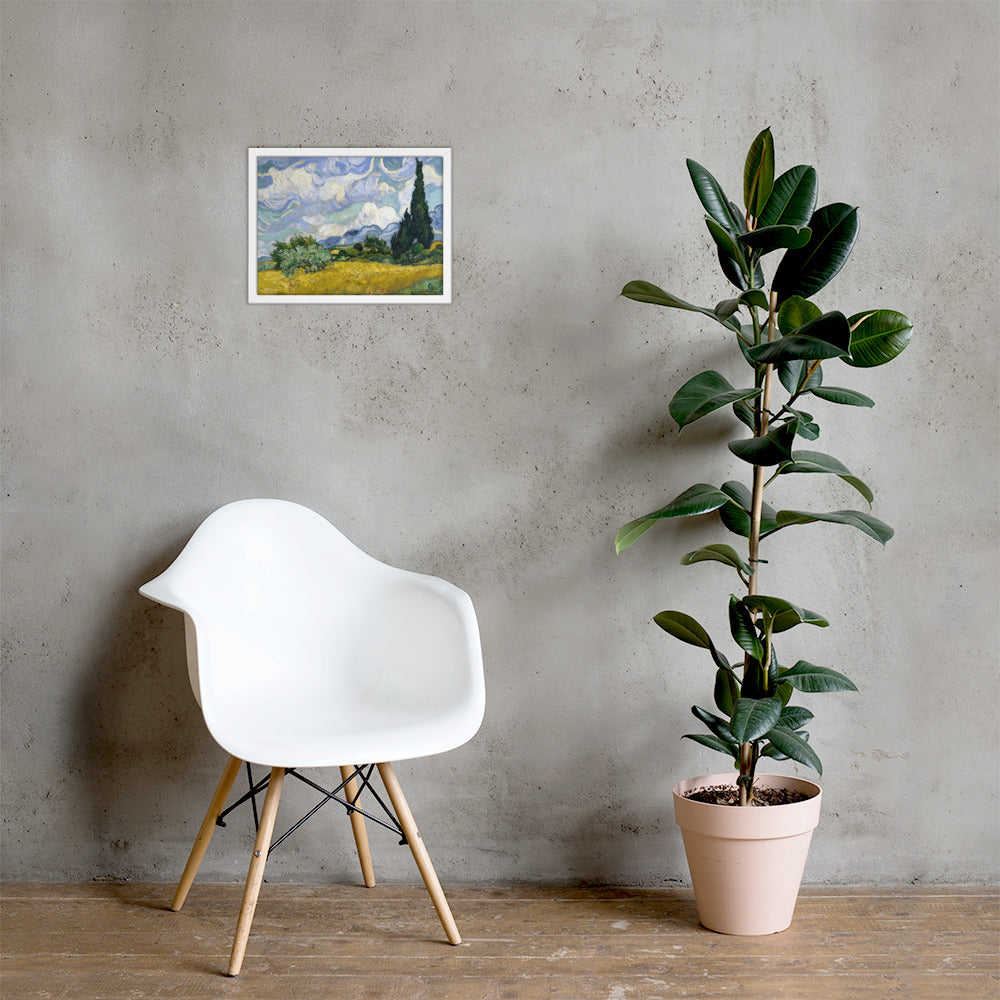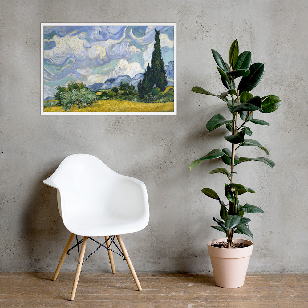 Bring the golden warmth of the countryside into your space with Wheat Fields with Cypresses by Vincent van Gogh. This iconic impressionist artwork captures the swirling energy of nature through bold brushstrokes and vibrant color. The golden wheat field, dramatic cypress trees, and expressive sky evoke a sense of movement and emotion that defines van Gogh’s post-impressionist style.